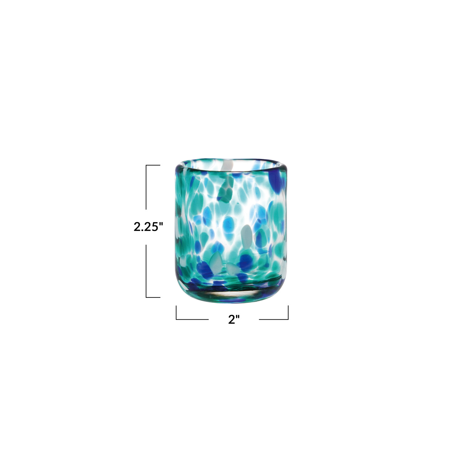 Catalog Name: 2" Round x 2-1/4"H 2 oz. Hand-Blown Confetti Shot Glass, Blue