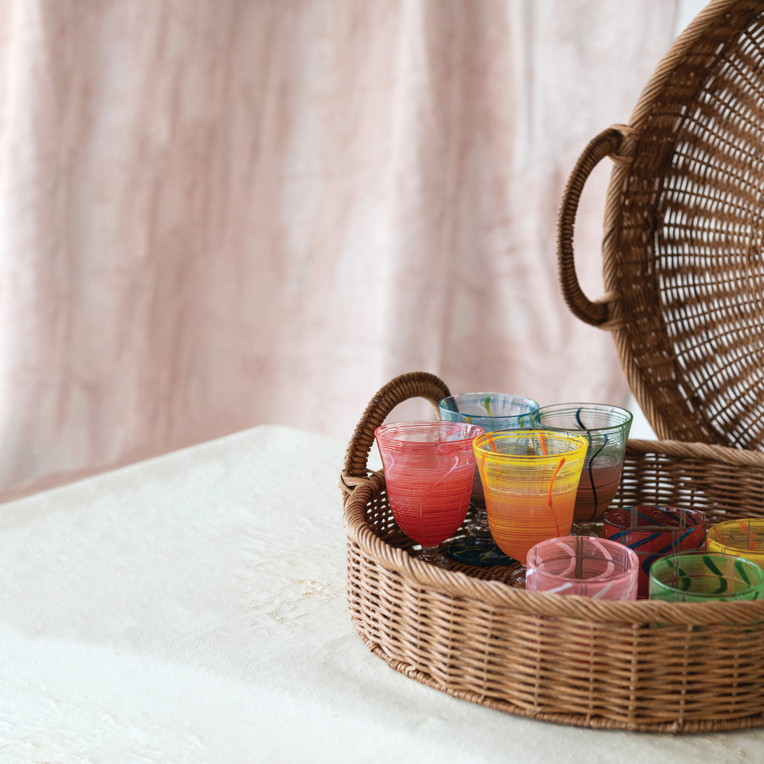 Catalog Name: 3-1/2" Round x 5-1/4"H 8 oz. Stemmed Wine Glass w/ Stripes & Wave Design, 4 Colors (Each One Will Vary)