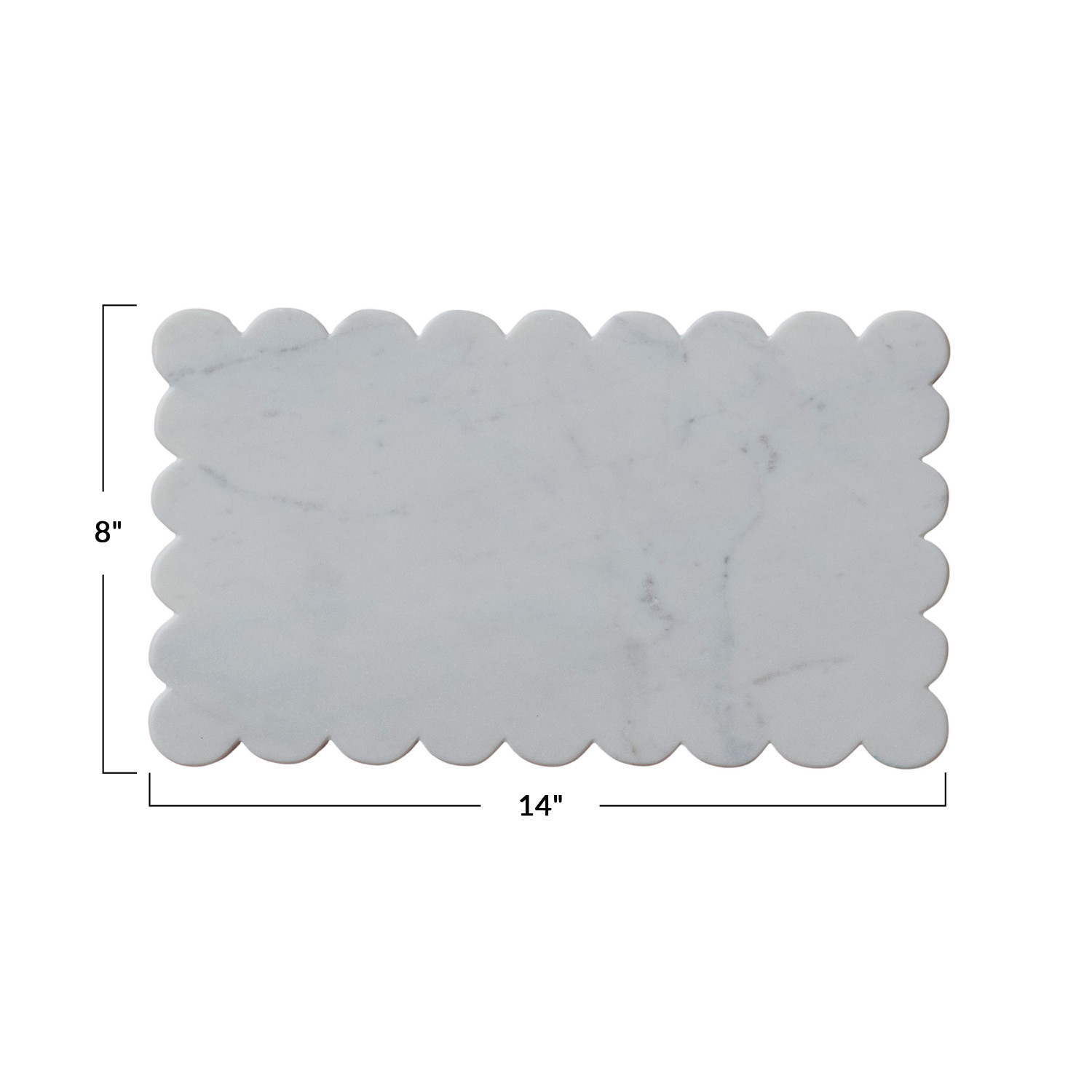 Catalog Name: 14"L x 8"W Marble Scalloped Cheese/Serving Board, White
