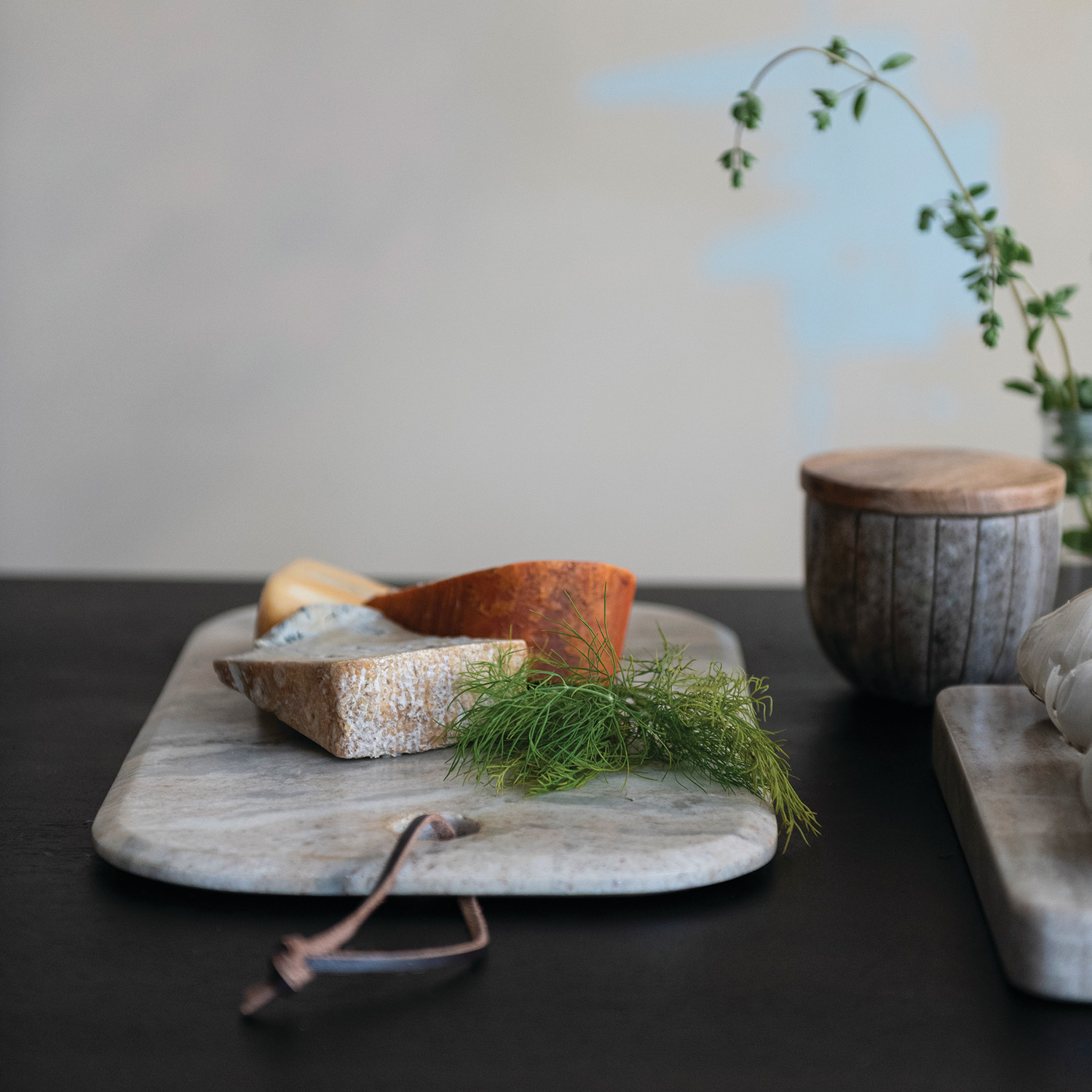 Marble Cheese/Serving Board with Leather Tie, Buff Color (Each One Will Vary)