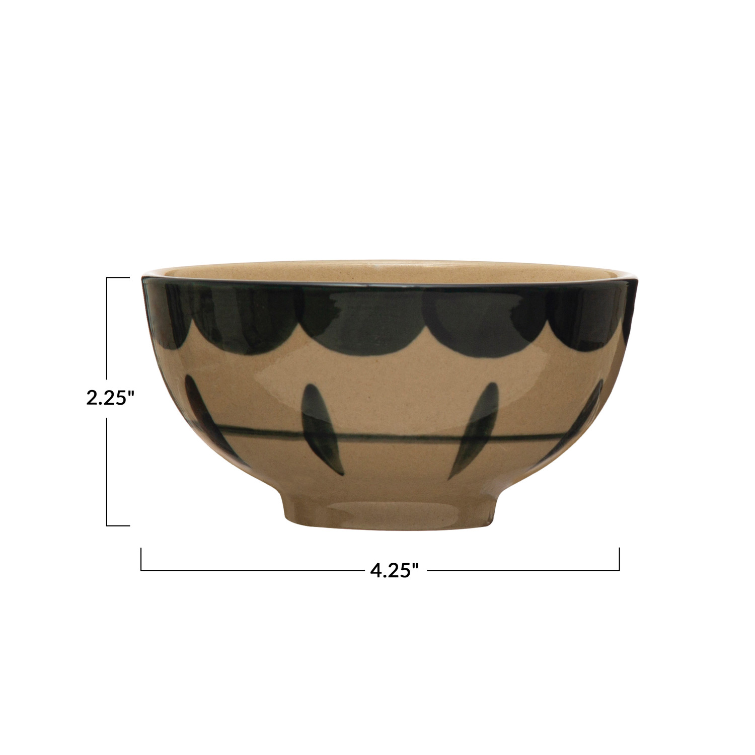 Catalog Name: 4-1/4" Round x 2-1/4"H Hand-Painted Stoneware Bowl w/ Pattern, Midnight Blue & Cream Color