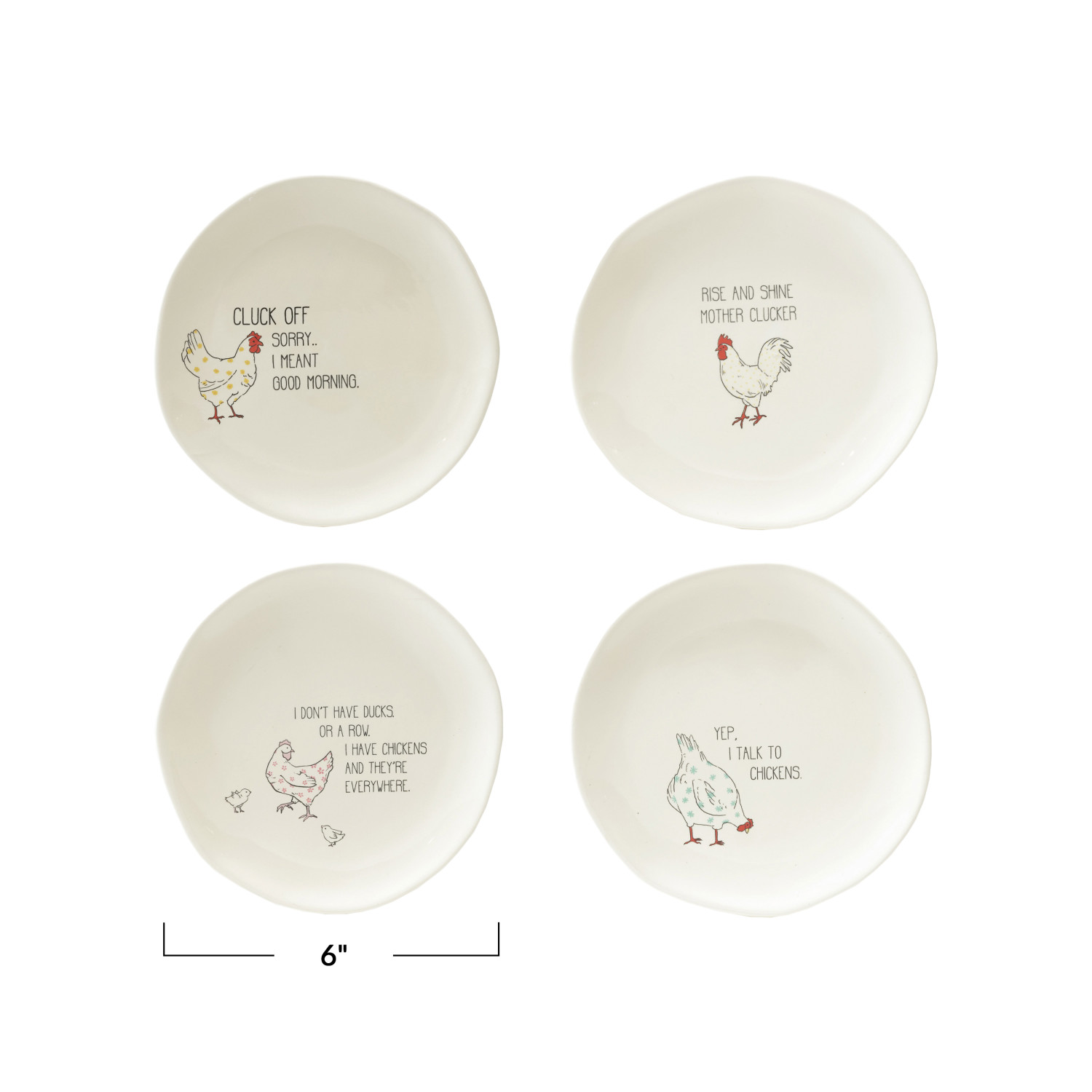 Catalog Name: 6" Round Stoneware Plate w/ Chicken & Saying, Multi Color, 4 Styles