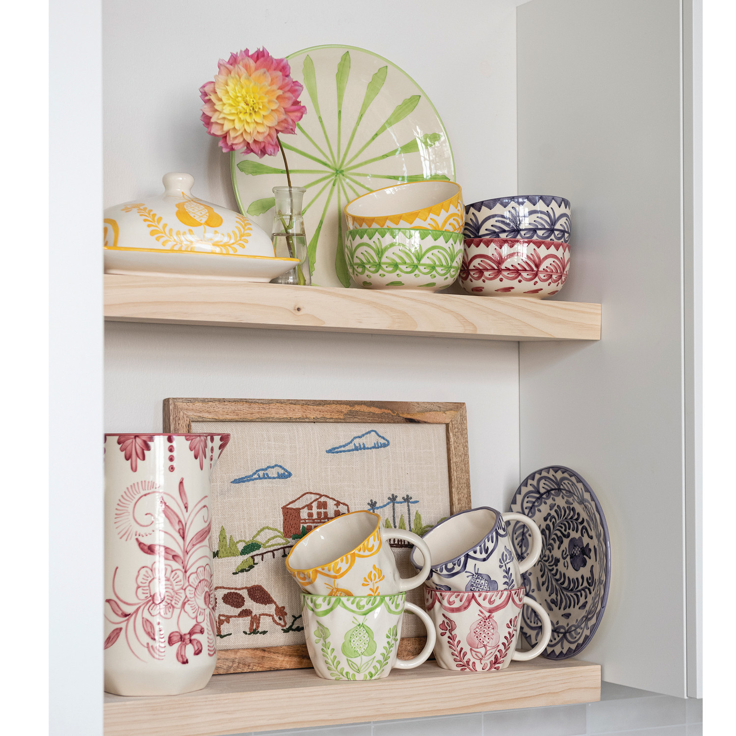 Hand-Painted Stoneware Plate with Design, 4 Colors (Each One Will Vary)