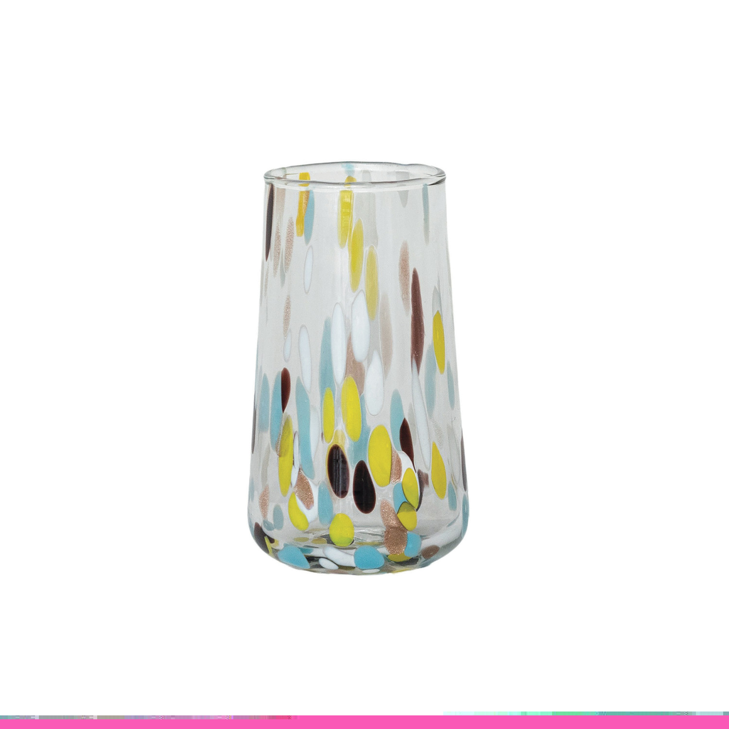 Catalog Name: 3" Round x 5-1/2"H 12 oz. Hand-Blown Confetti Drinking Glass, Multi Color