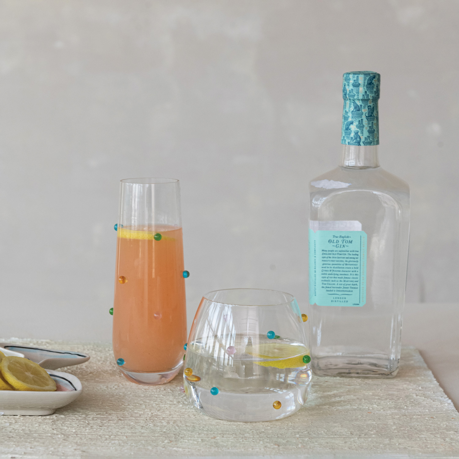 Catalog Name: 2-1/2" Round x 6-1/4"H 10 oz. Handmade Drinking Glass w/ Raised Dots, Multi Color