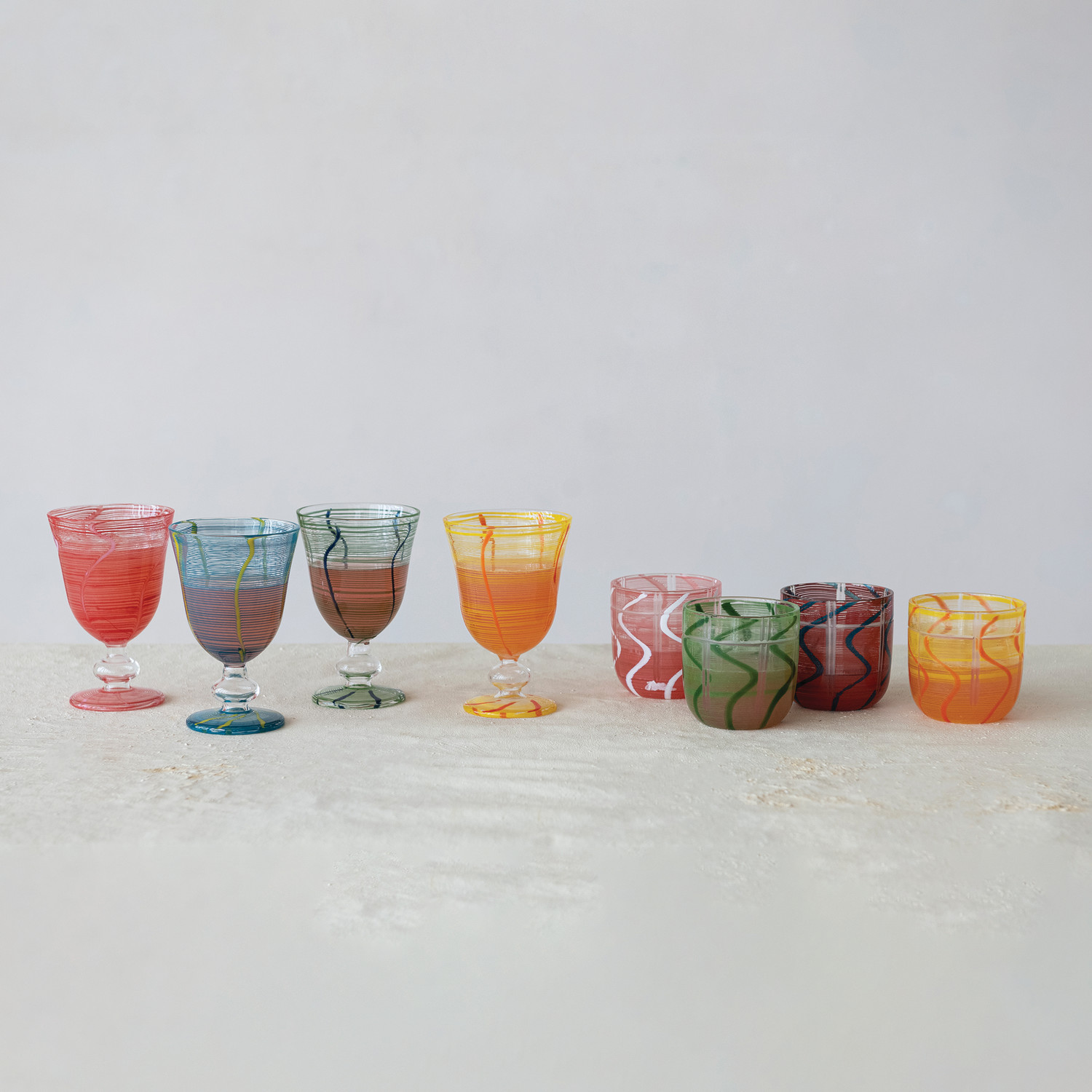 8 oz. Drinking Glass with Stripes & Wave Design, 4 Colors (Each One Will Vary)
