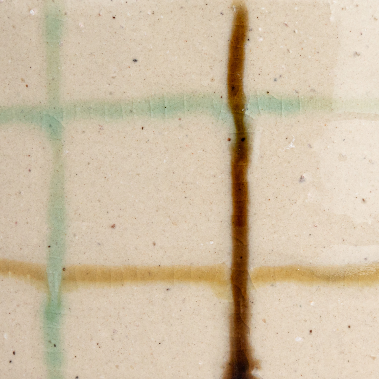 Catalog Name: 5-1/4" Round x 3-1/2"H Hand-Painted Stoneware Dish w/ Grid Pattern & Lid, Reactive Crackle Glaze, Multi Color (Each One Will Vary)