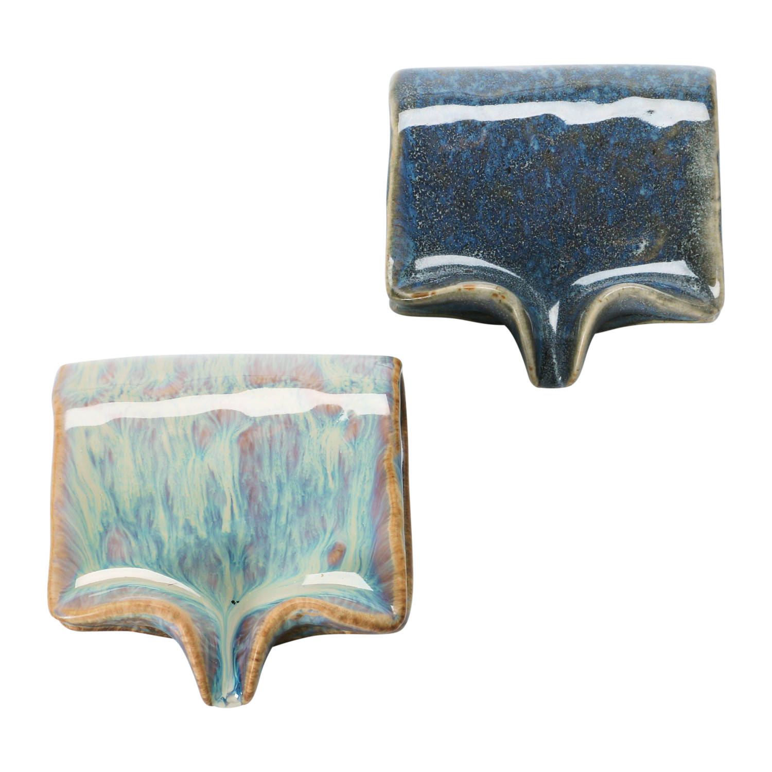 Catalog Name: 4-1/2" Square x 1-3/4"H Stoneware Sponge Holder/Soap Dish w/ Drip Spout, Reactive Glaze, 2 Colors (Each One Will Vary)