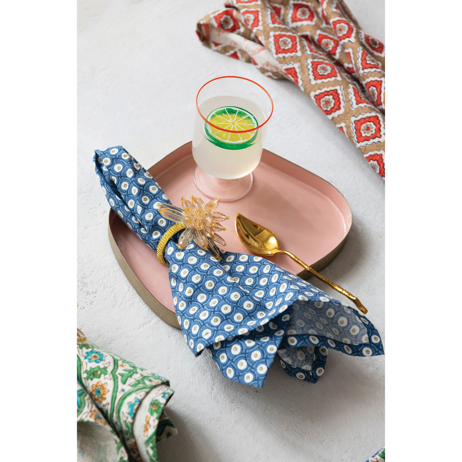 Handmade Acrylic & Glass Beaded Flower Napkin Rings, Set of 4 Tied with Gold Cord