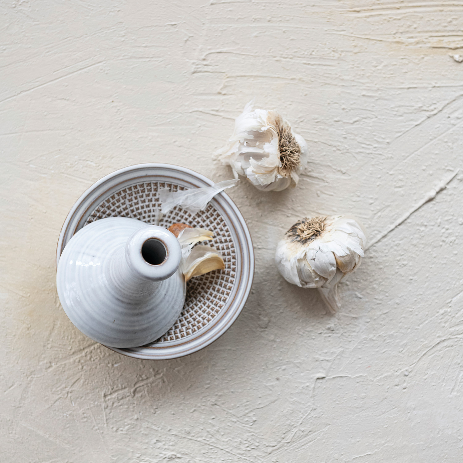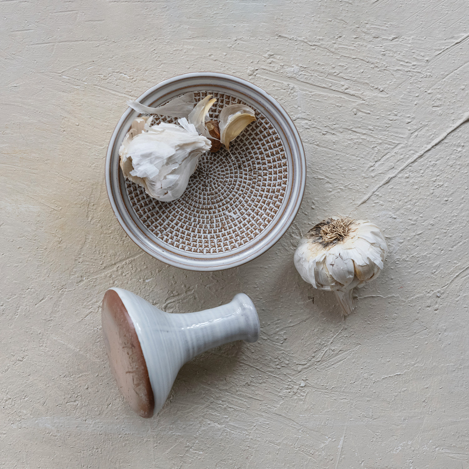 Round Stoneware Mortar & Pestle, White, Set of 2 (Each One Will Vary)