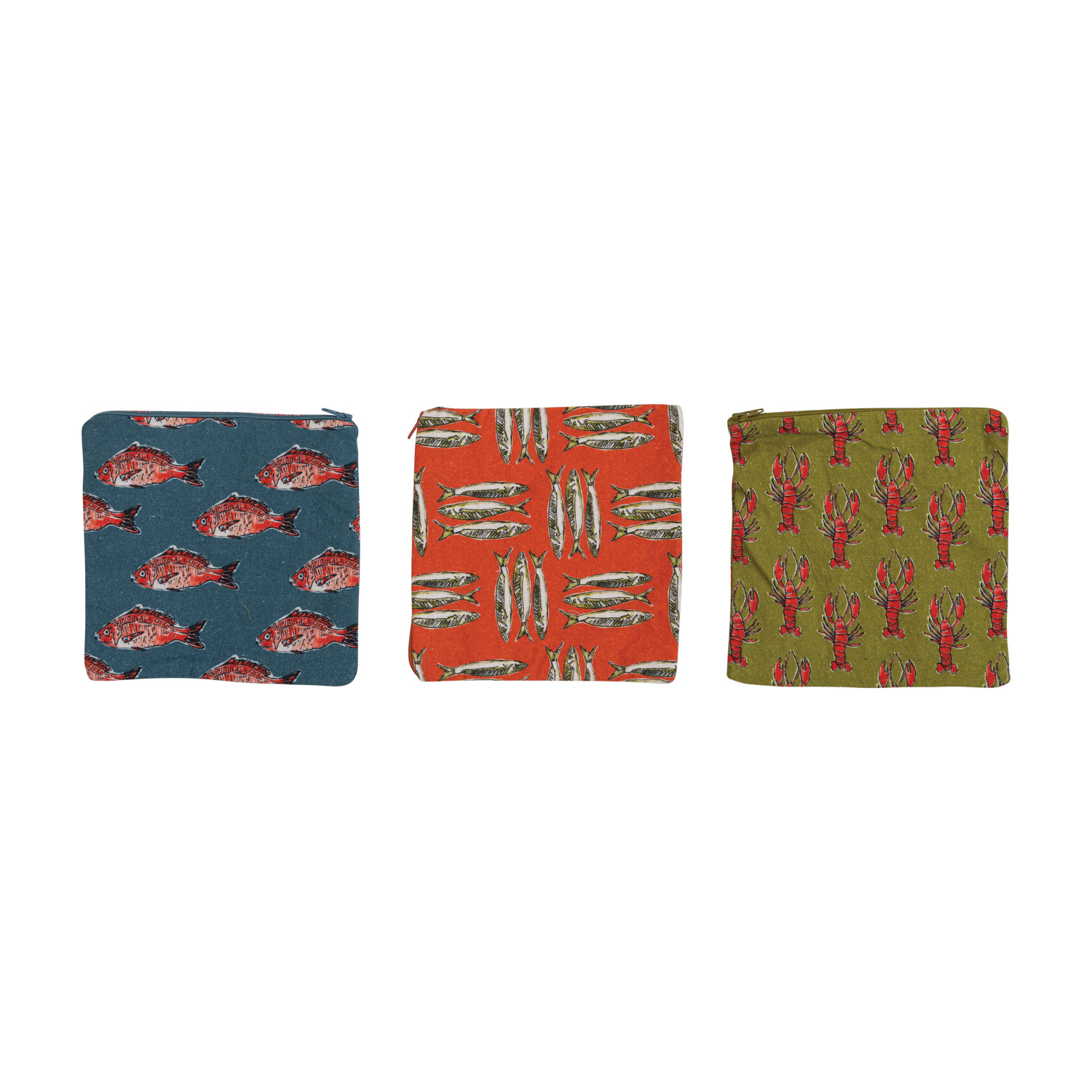 Cotton Printed Zip Food Pouch w/ Sea Life & Interior Coating, Multi Color, 3 Styles ©