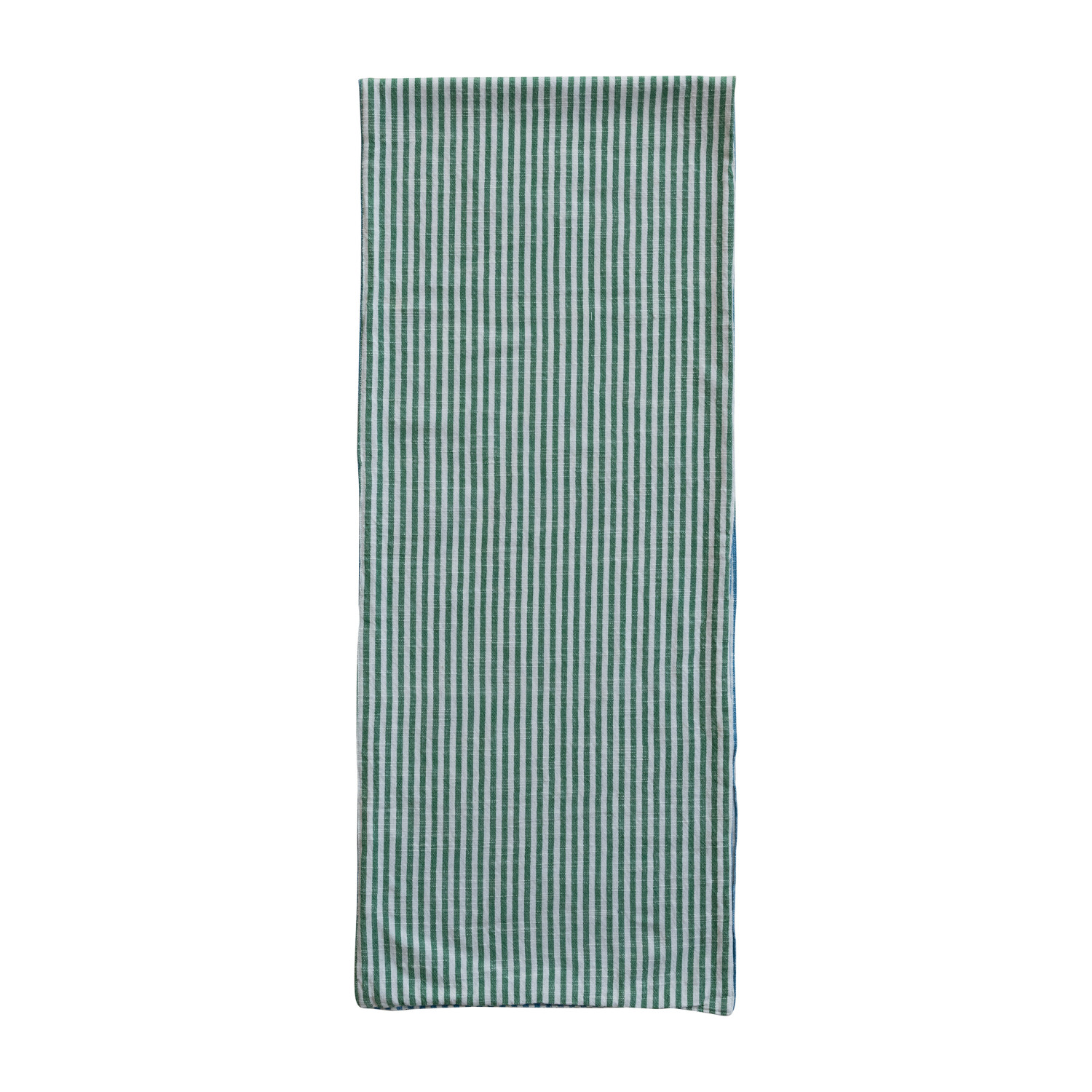 Woven Cotton Two-Sided Striped Table Runner, Blue, Green & Natural