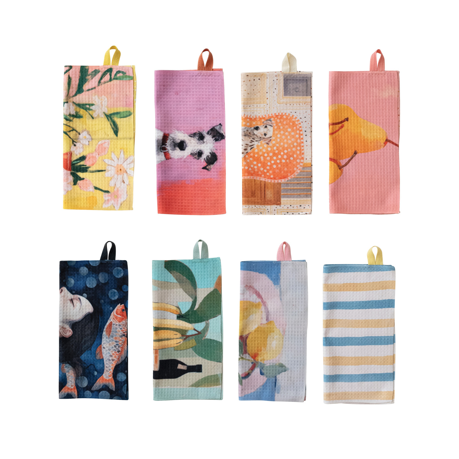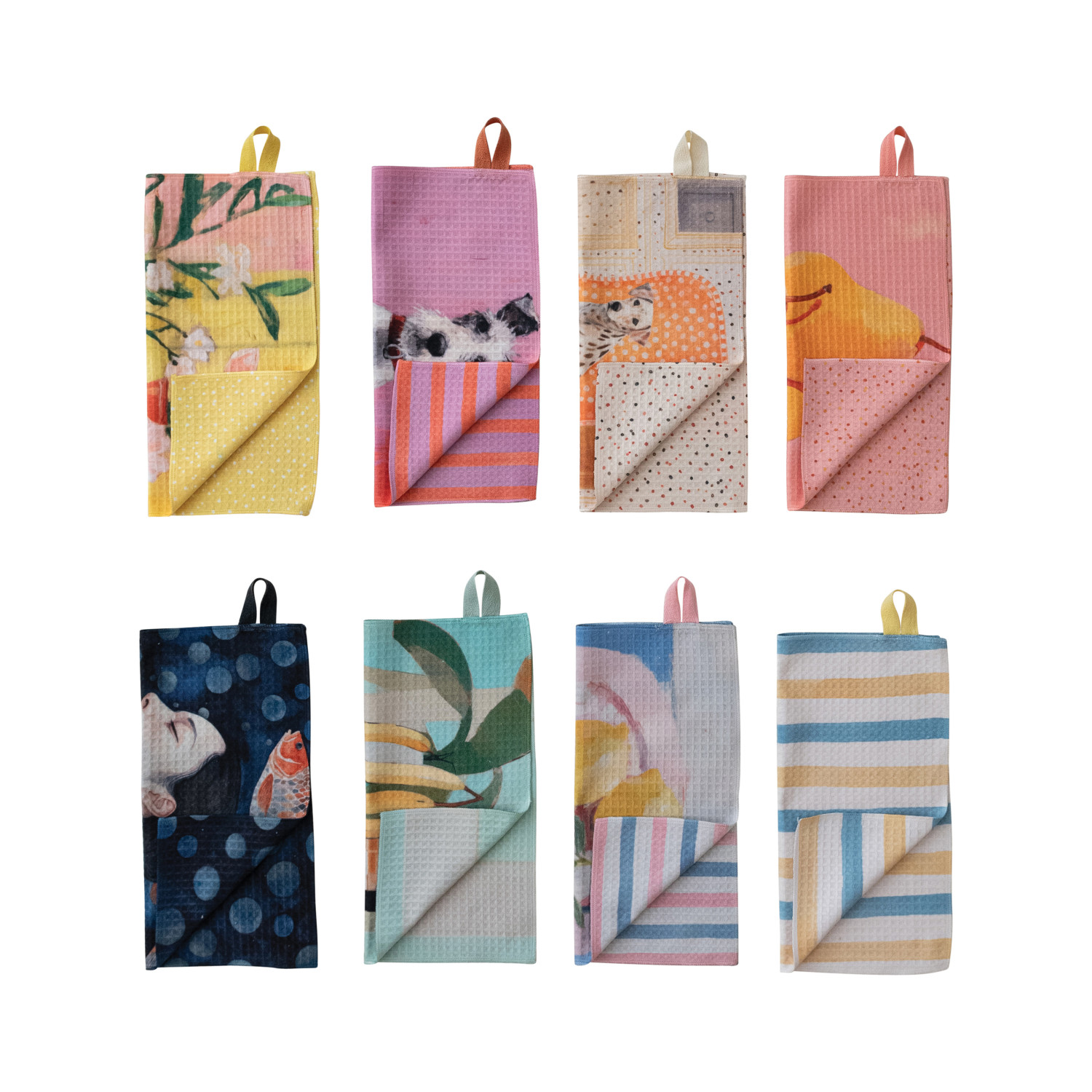 Catalog Name: 10-1/2" Square Printed Recycled Microfibre Two-Sided Dish Cloth, Multi Color, 8 Styles
