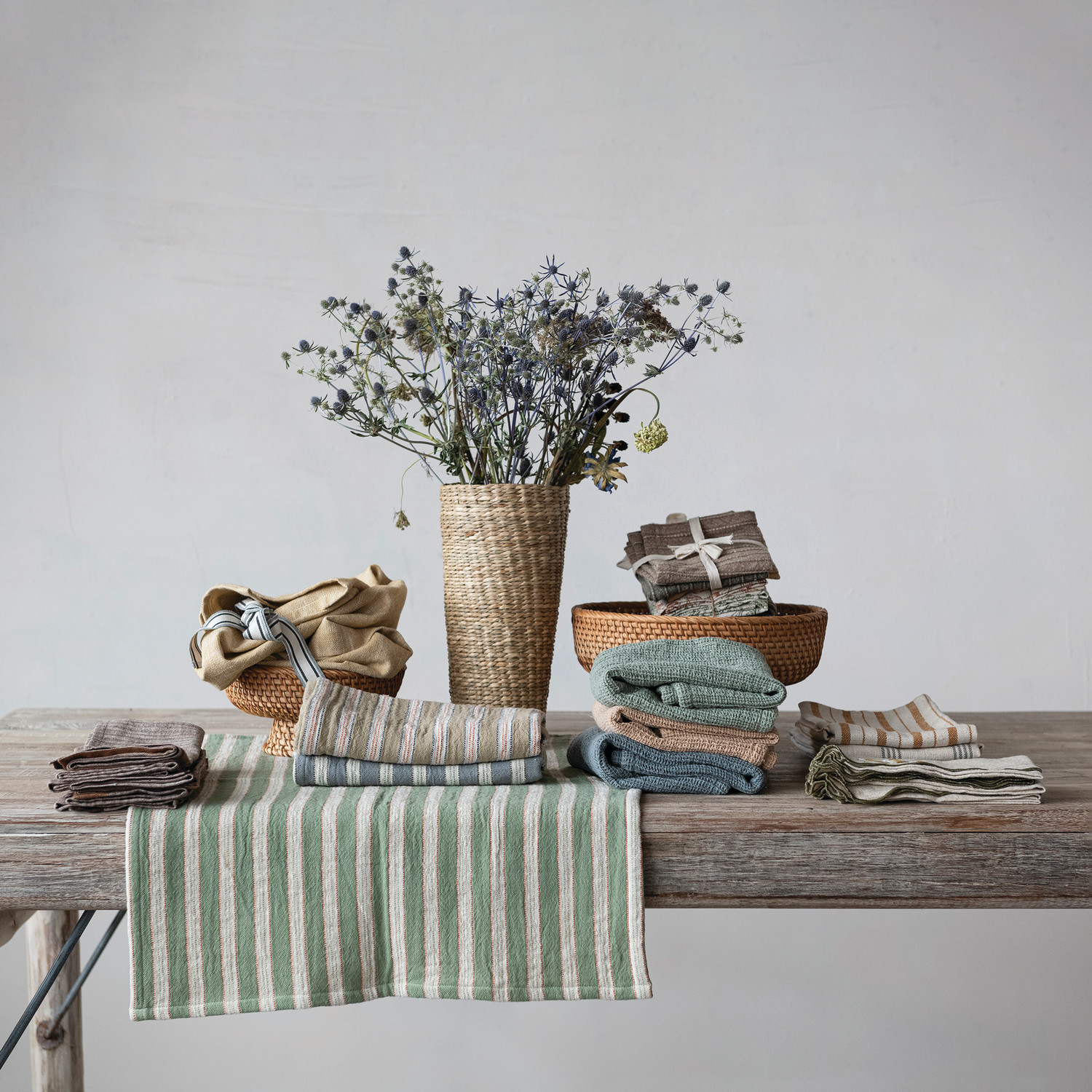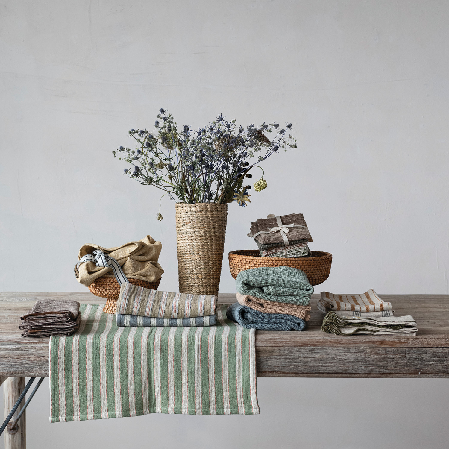 Woven Cotton Slub Tea Towel with Stripes, 3 Styles