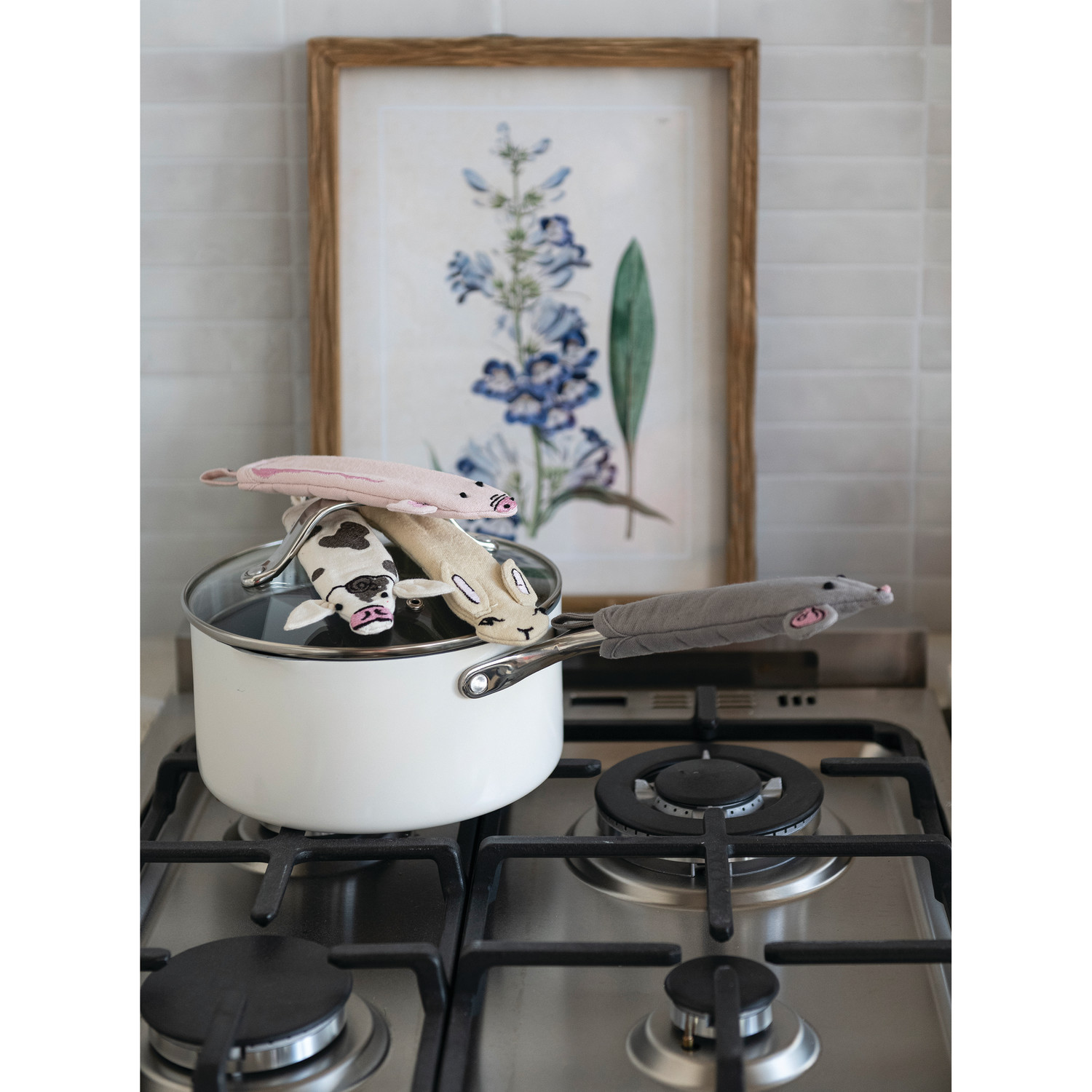 Catalog Name: 6-1/2"L x 1-3/4"W Cotton Animal Shaped Pot Handle Cover w/ Embroidery, Multi Color, 4 Styles