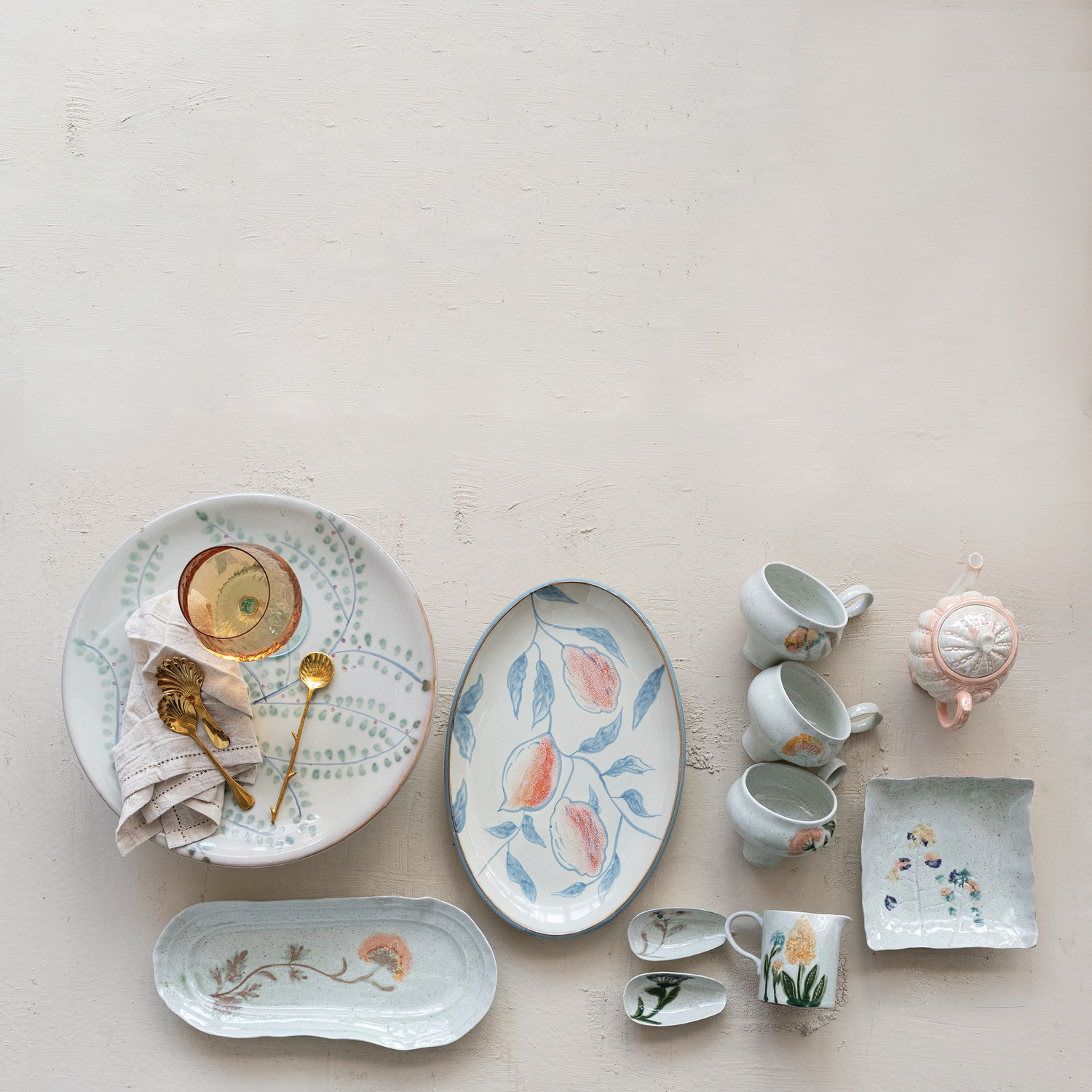 12 oz. Hand-Painted Stoneware Mug with Flowers, 3 Styles (Each One Will Vary)
