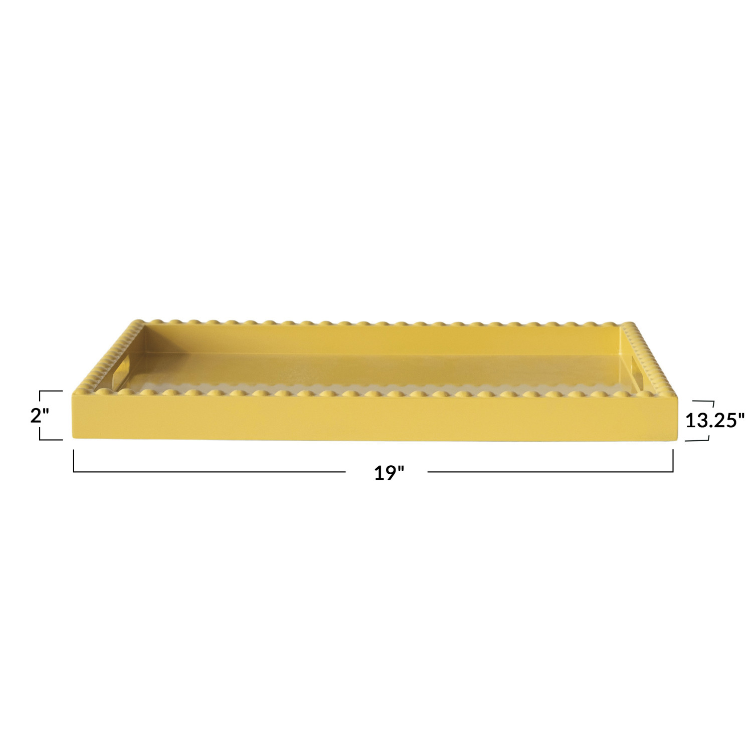 Catalog Name: 19"L x 13-1/4"W x 2"H MDF & Rubberwood Lacquered Tray w/ Hobnail Edge & Handles, Yellow