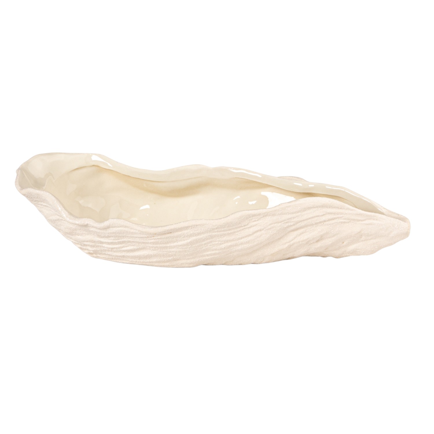 Catalog Name: 16"L x 8"W x 3-3/4"H Stoneware Oyster Shell Shaped Bowl, Reactive Glaze & Unglazed, White (Each One Will Vary)