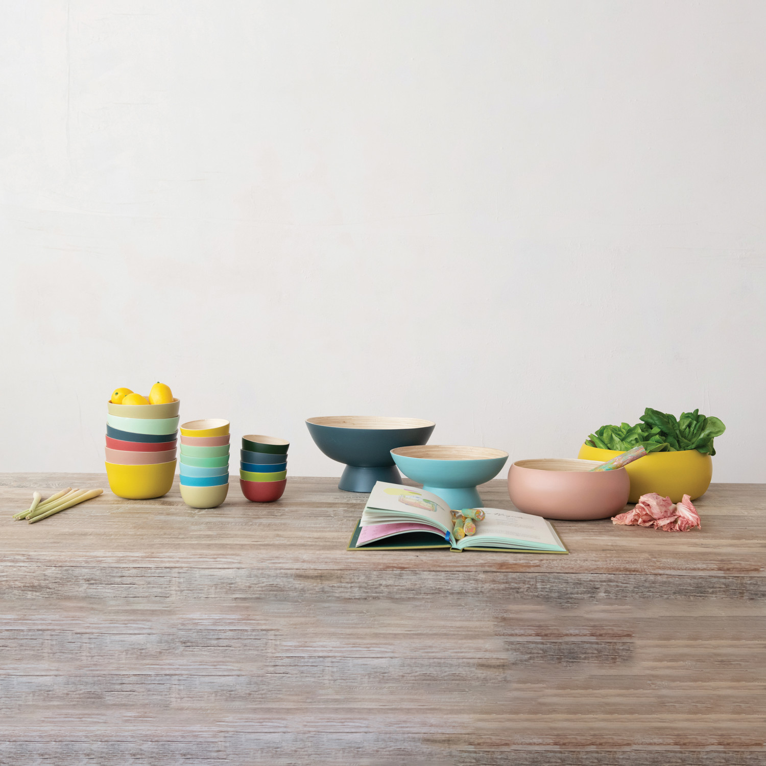 Bamboo Footed Bowl w/ Natural Finish Inside, Matte Navy Color