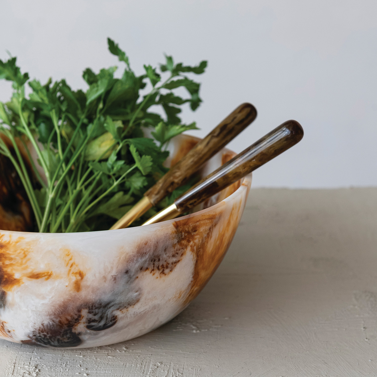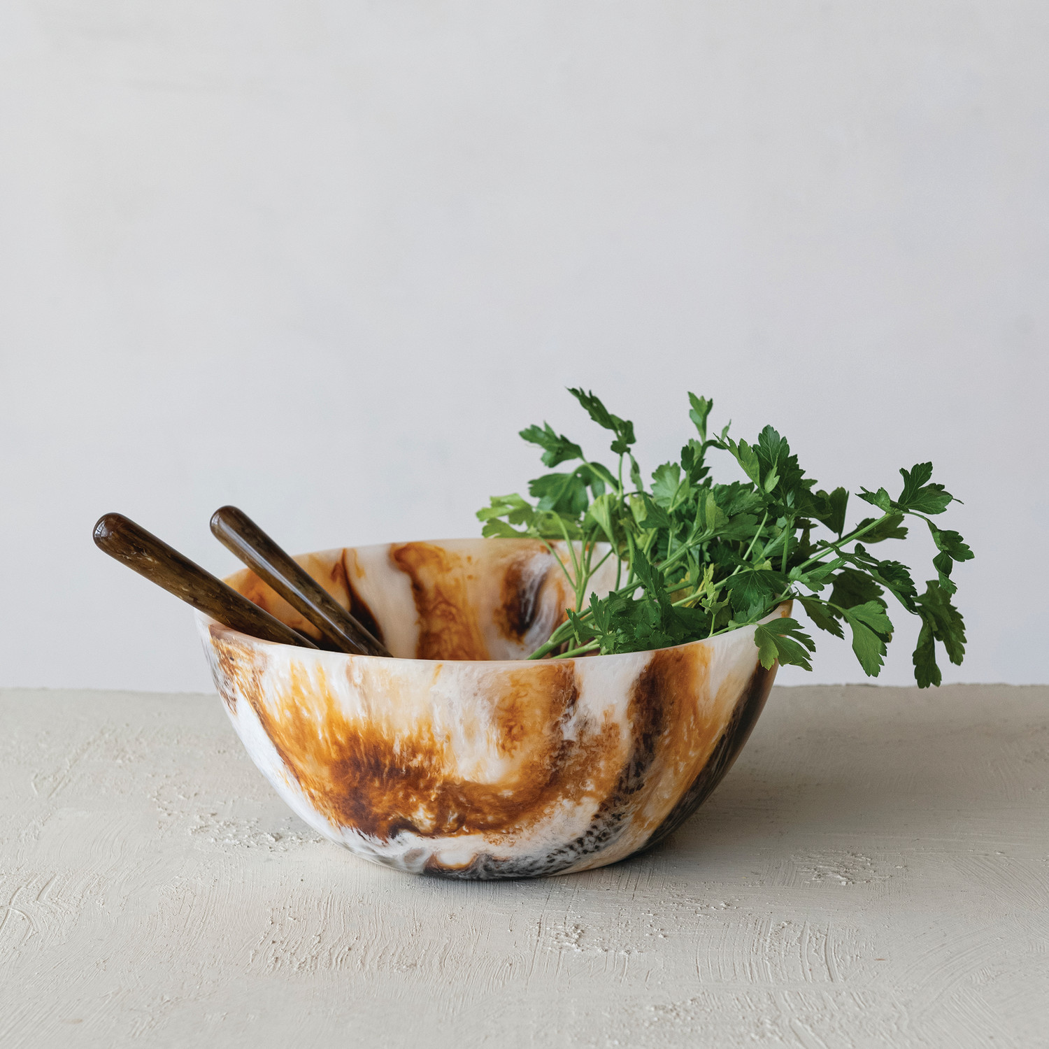 Catalog Name: 11-3/4" Round x 4-3/4"H Marbled Resin Bowl, Brown & Cream Color (Each One Will Vary)