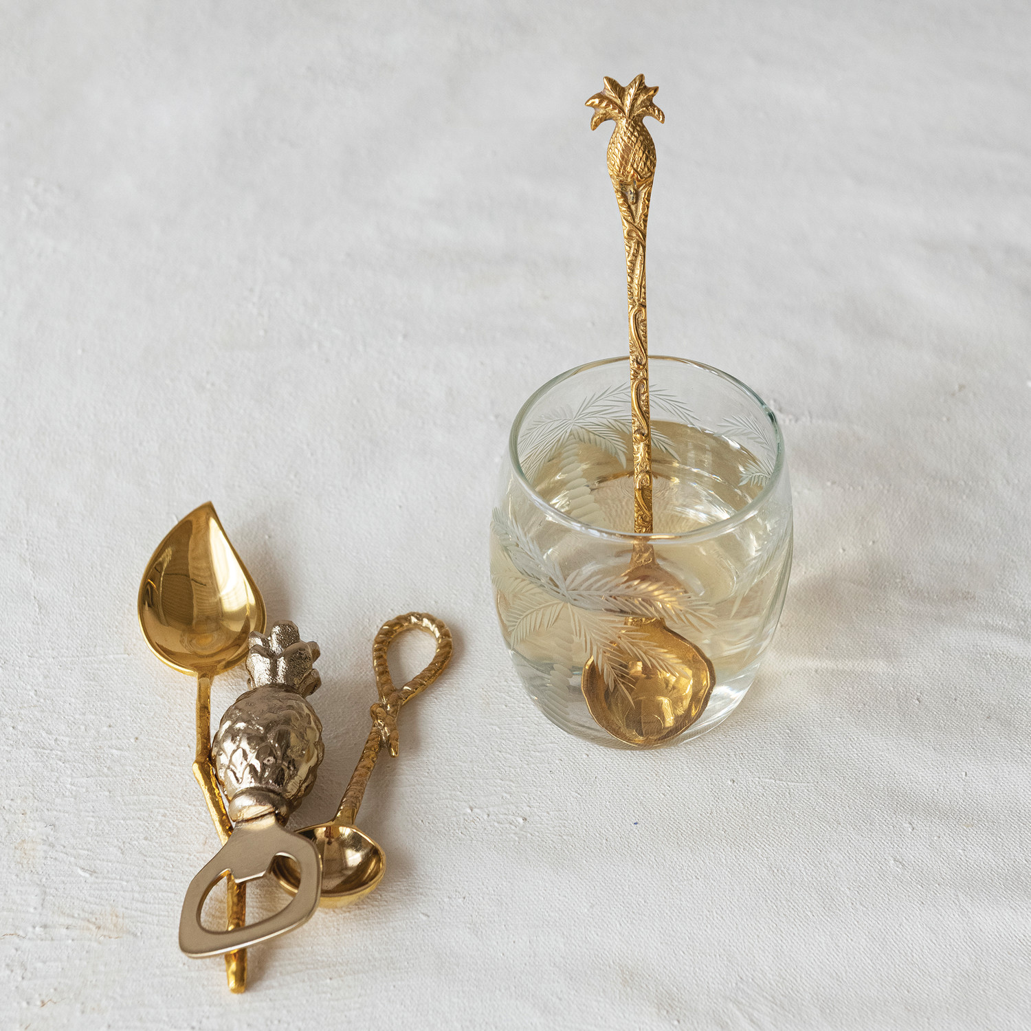 Catalog Name: 7-1/4"L Brass Spoon w/ Pineapple Shaped Handle