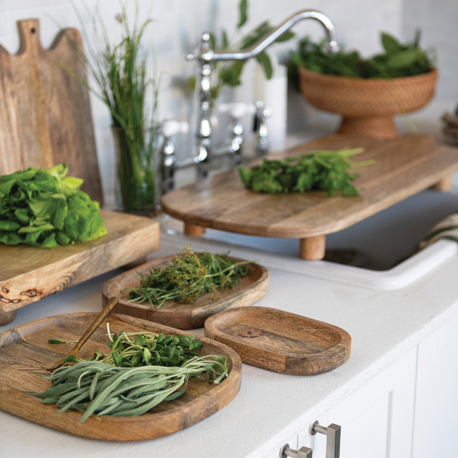 Oval Mango Wood Trays, Natural, Set of 3