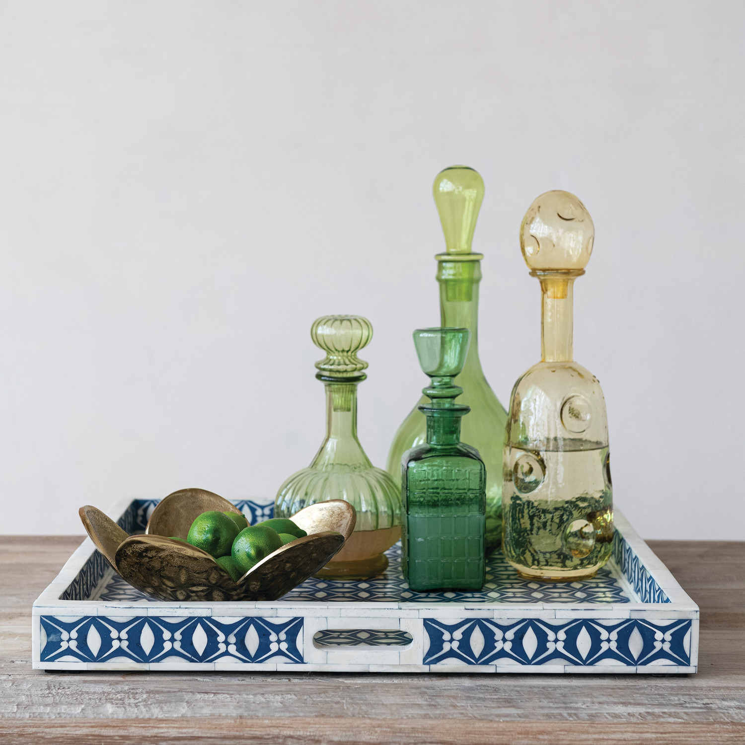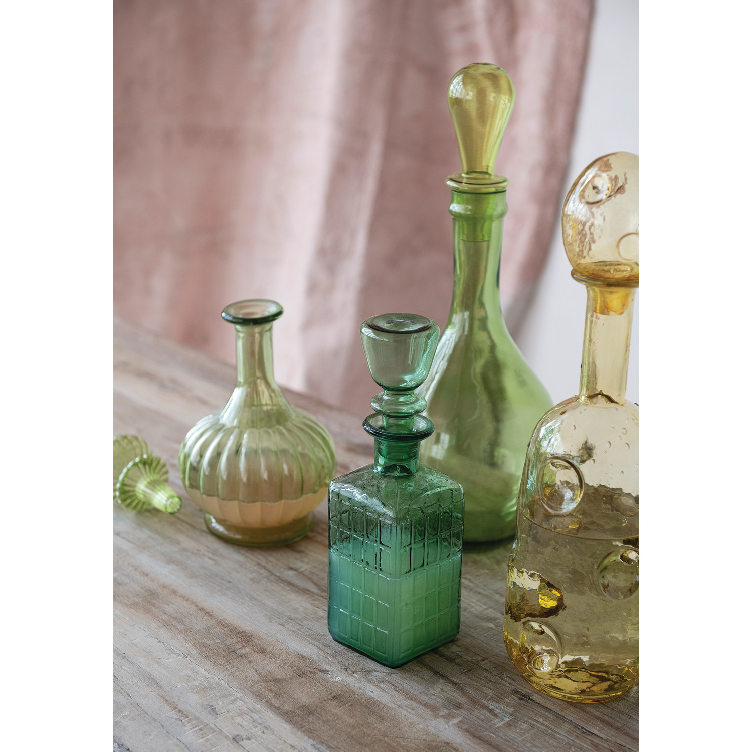 28 oz. Embossed Glass Decanter with Stopper & Grid Pattern, Dark Green
