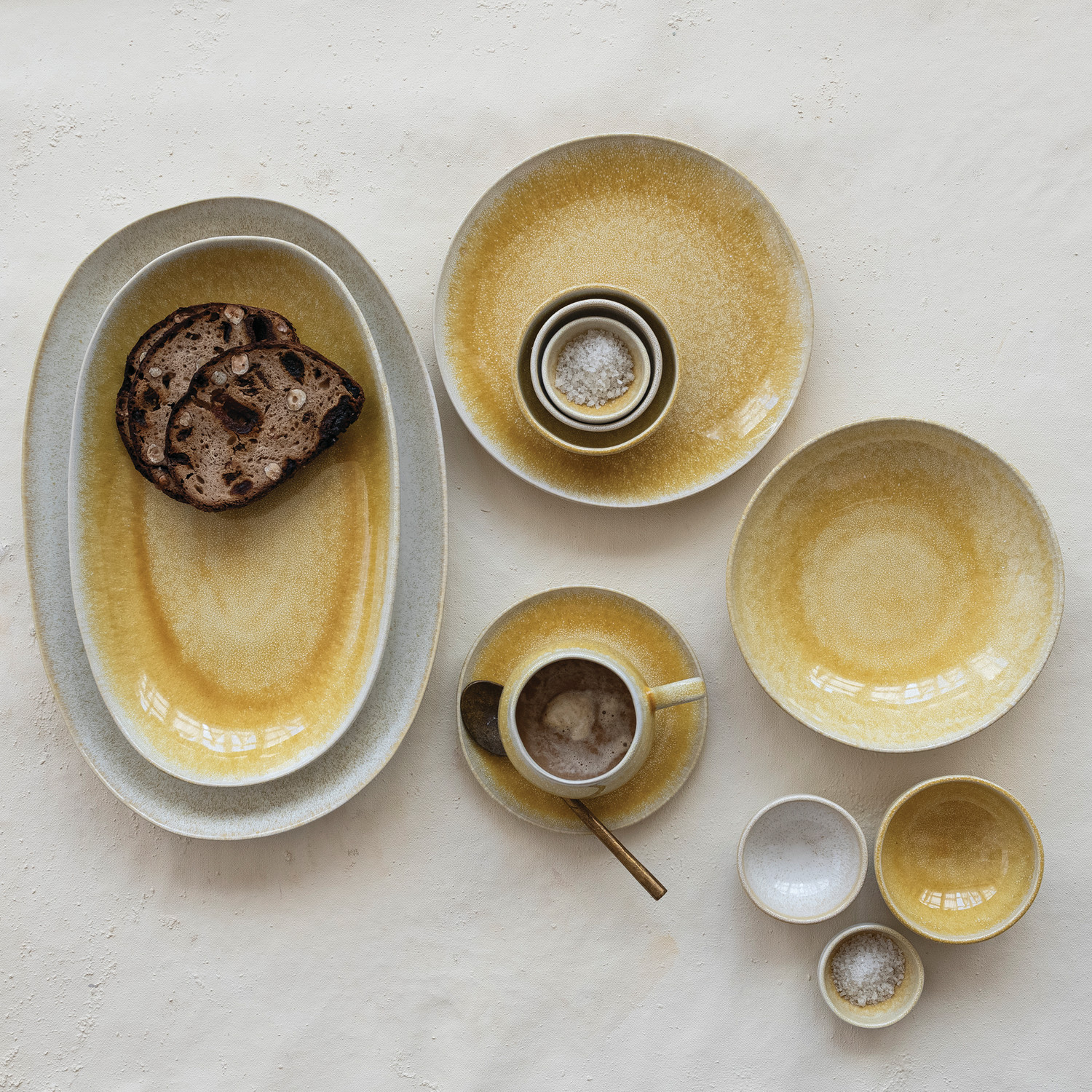 Stoneware Low Bowl, Yellow (Each One Will Vary)