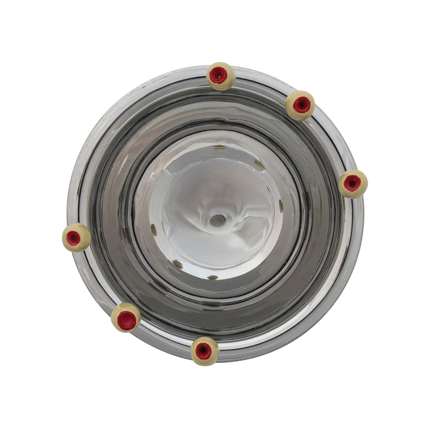 Enameled Stainless Steel Footed Bowl with (6) Olive Shaped Appetizer Picks on Rim, Set of 7