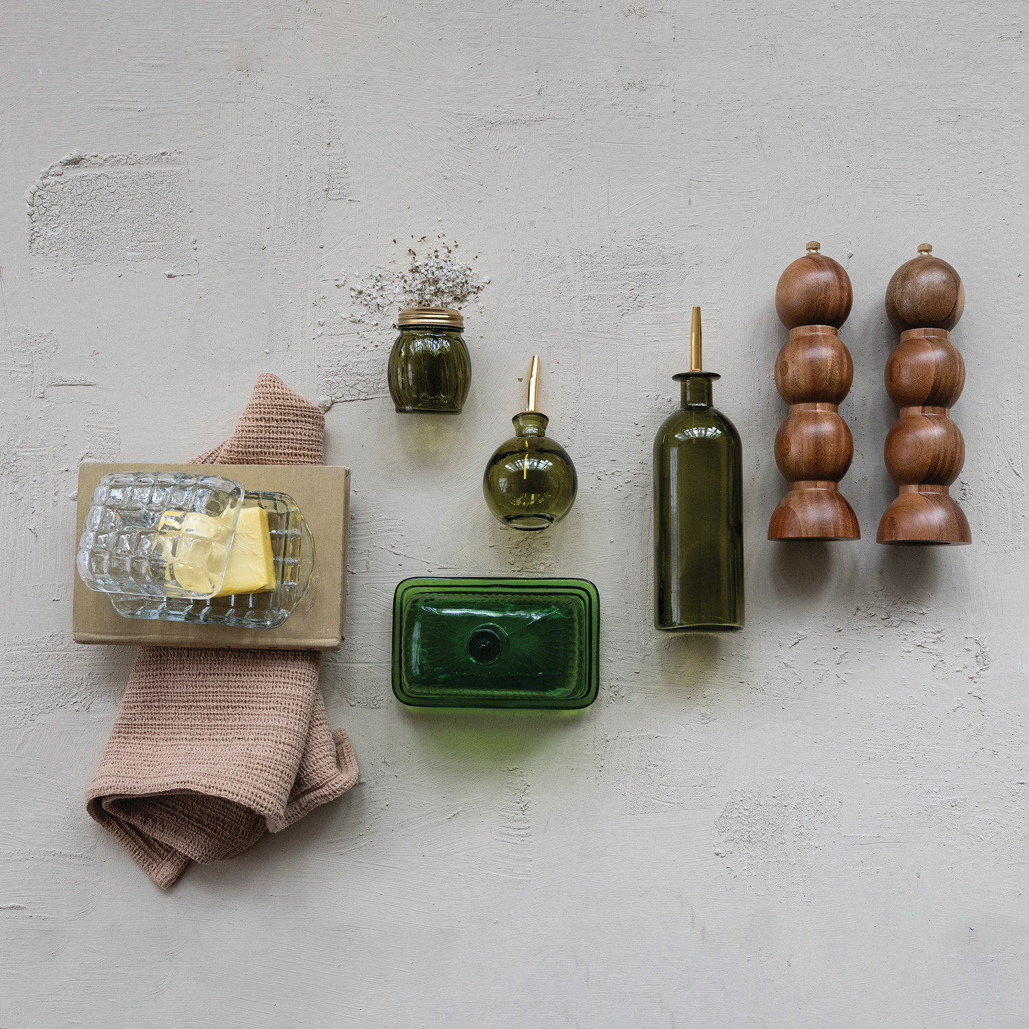 16 oz. Glass Oil Cruet with Metal Stopper, Olive Color & Gold Finish