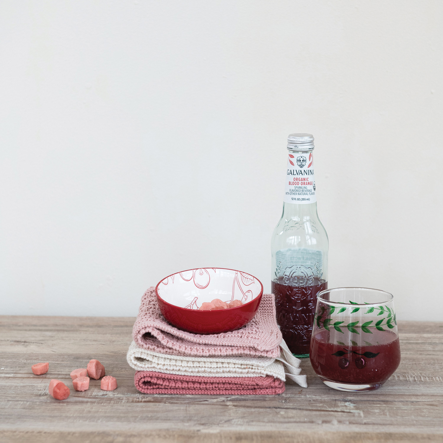 Stoneware Bowl with Cherry Pattern, Red & White