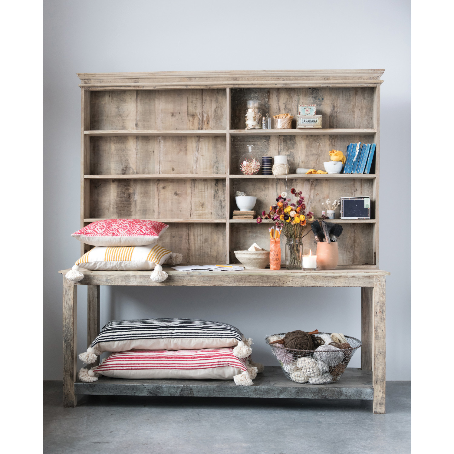 Catalog Name: 74"W x 23"D x 77"H Reclaimed Wood & Metal 2-Piece Hutch w/ 6 Shelves, Distressed Sunbleached Finish, Truck Ship