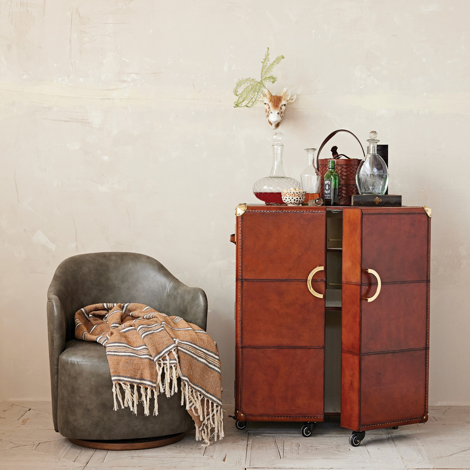 Bar Cabinet with Flocked Interior, Mirror & Brass Hardware