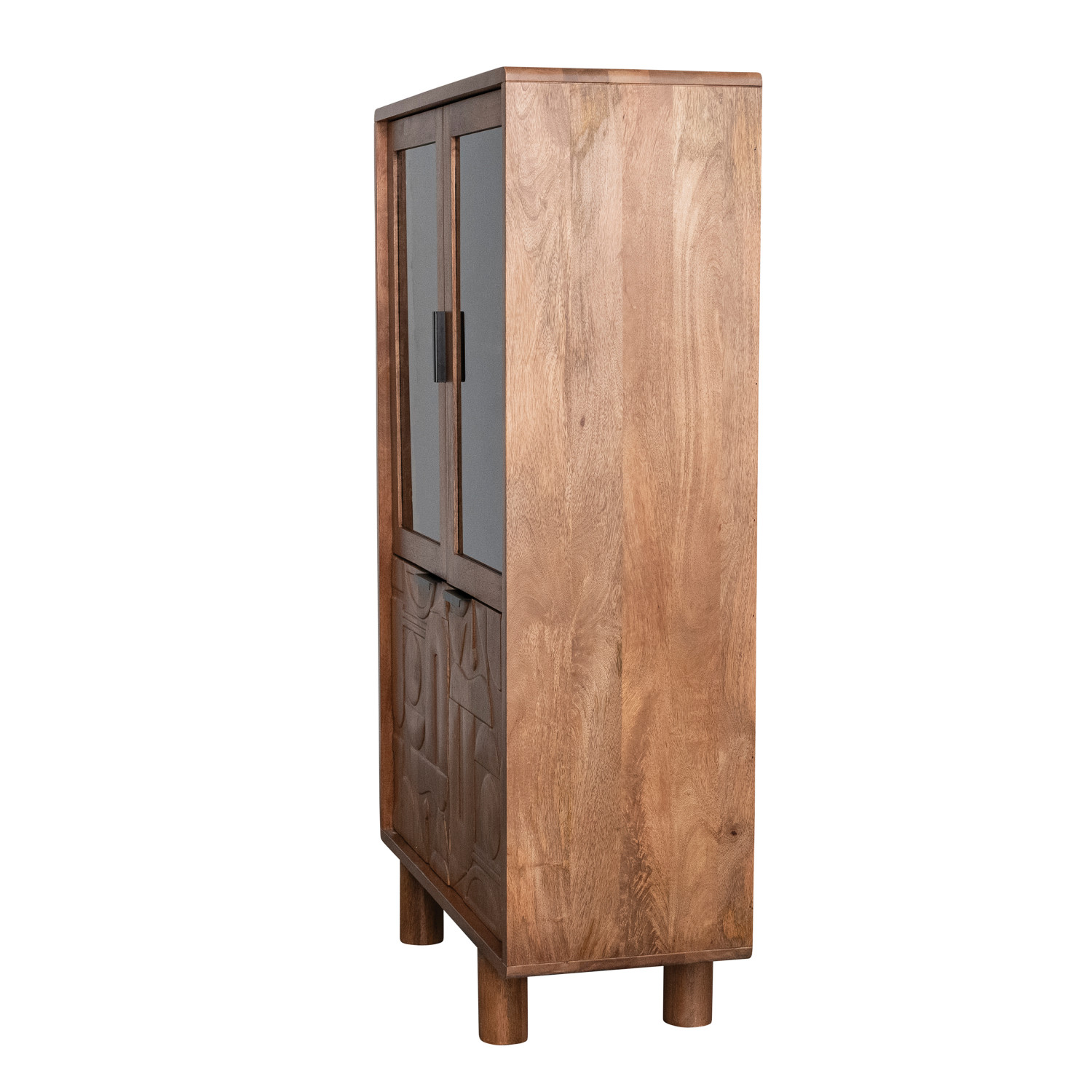 Catalog Name: 39"W x 17"D x 64"H Carved Mango & Acacia Wood Cabinet w/ 2 Glass Top Doors, 2 Bottom Doors & 4 Shelves, Natural, KD, Truck Ship