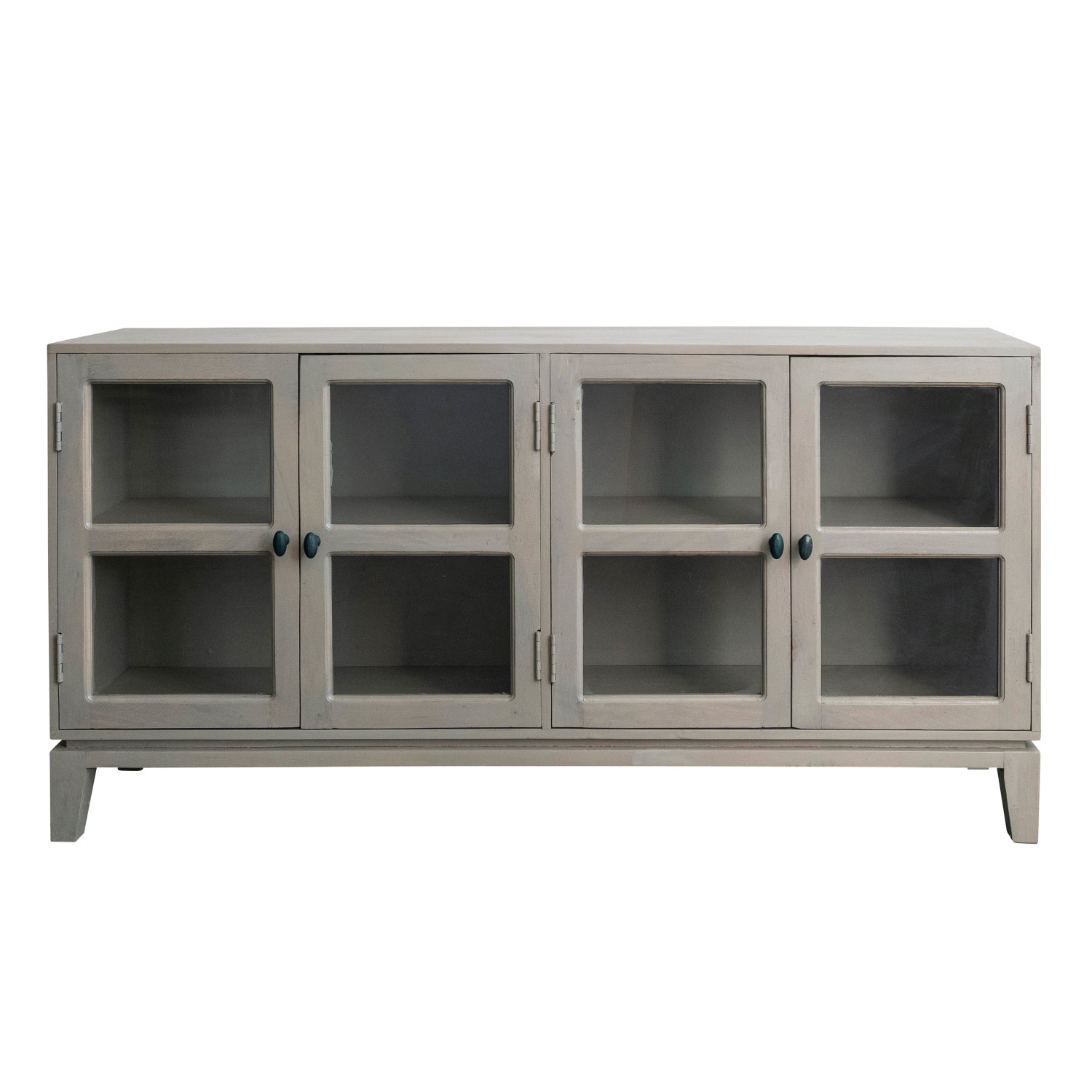 Catalog Name: 63"W x 15-3/4"D x 31-1/2"H Mango Wood Sideboard w/ 4 Glass Doors & 4 Shelves, Grey, Truck Ship
