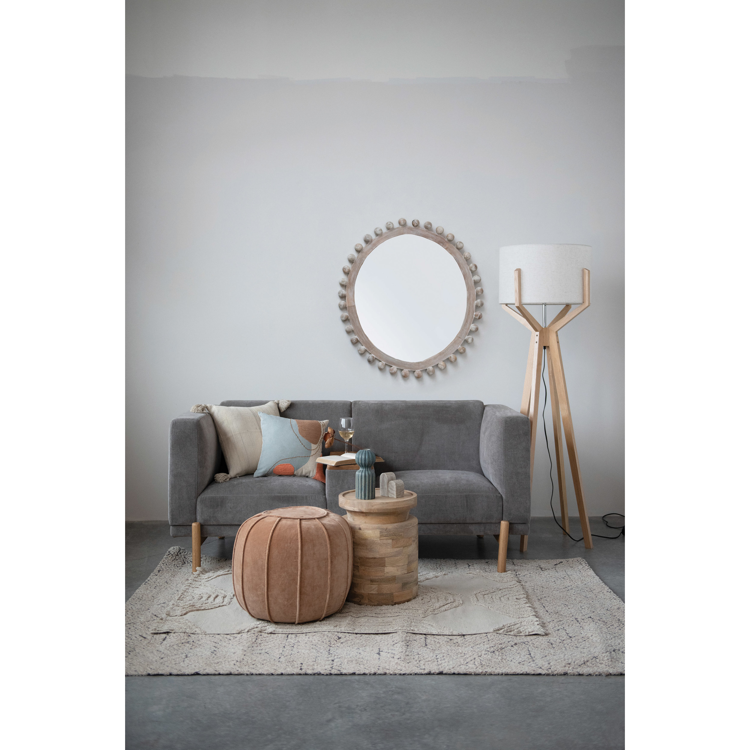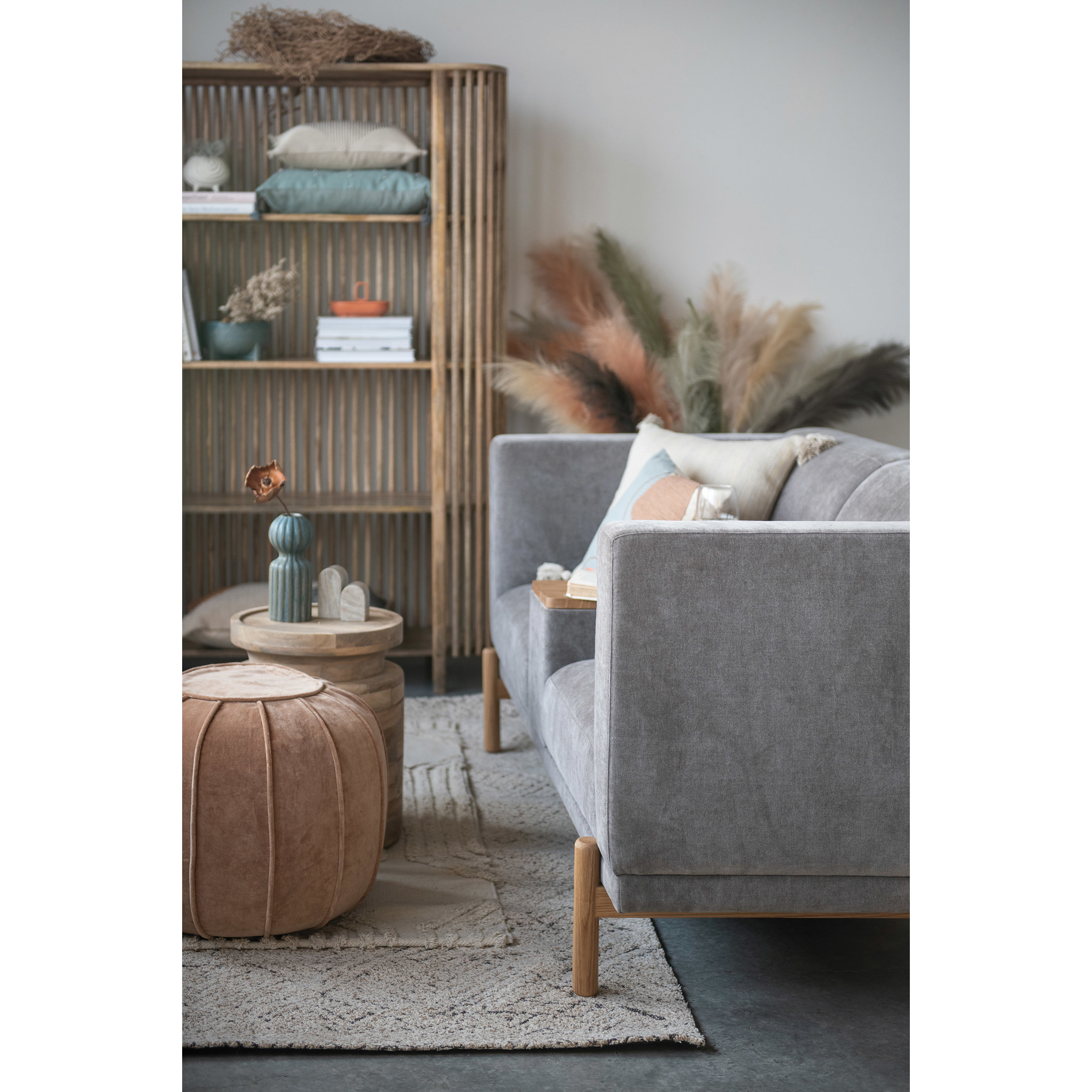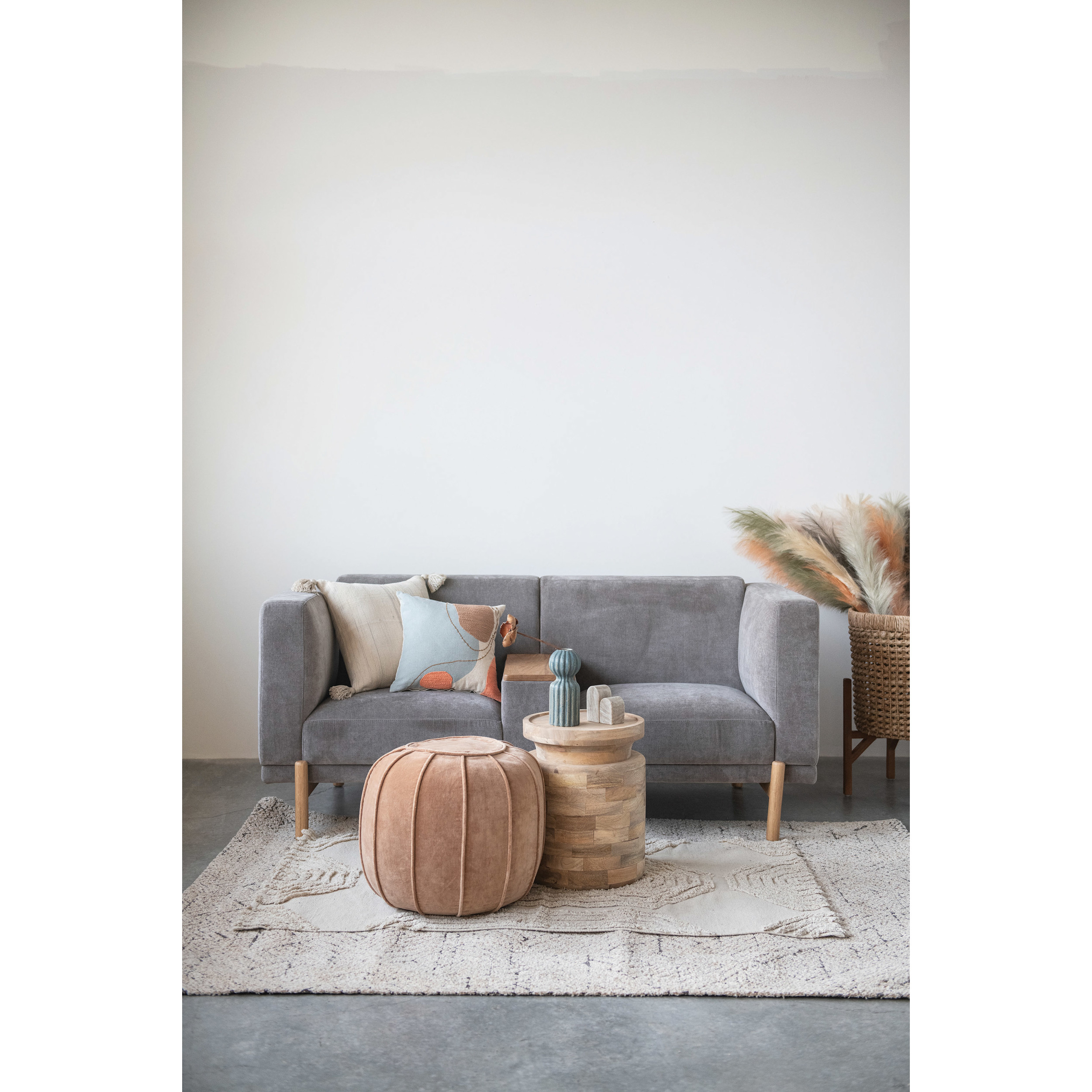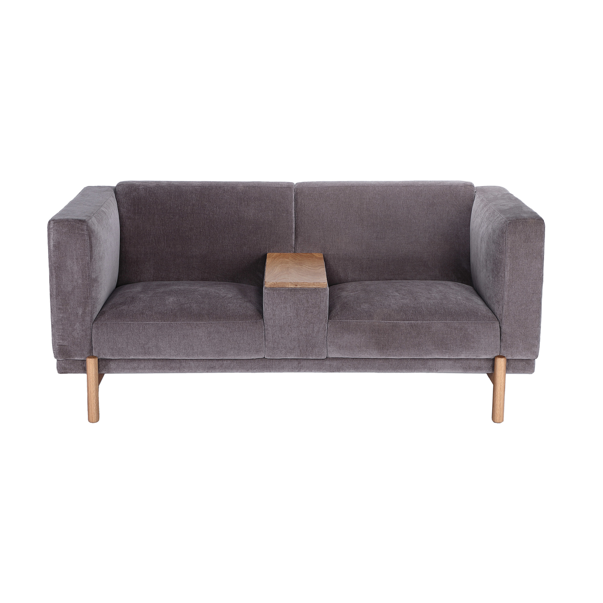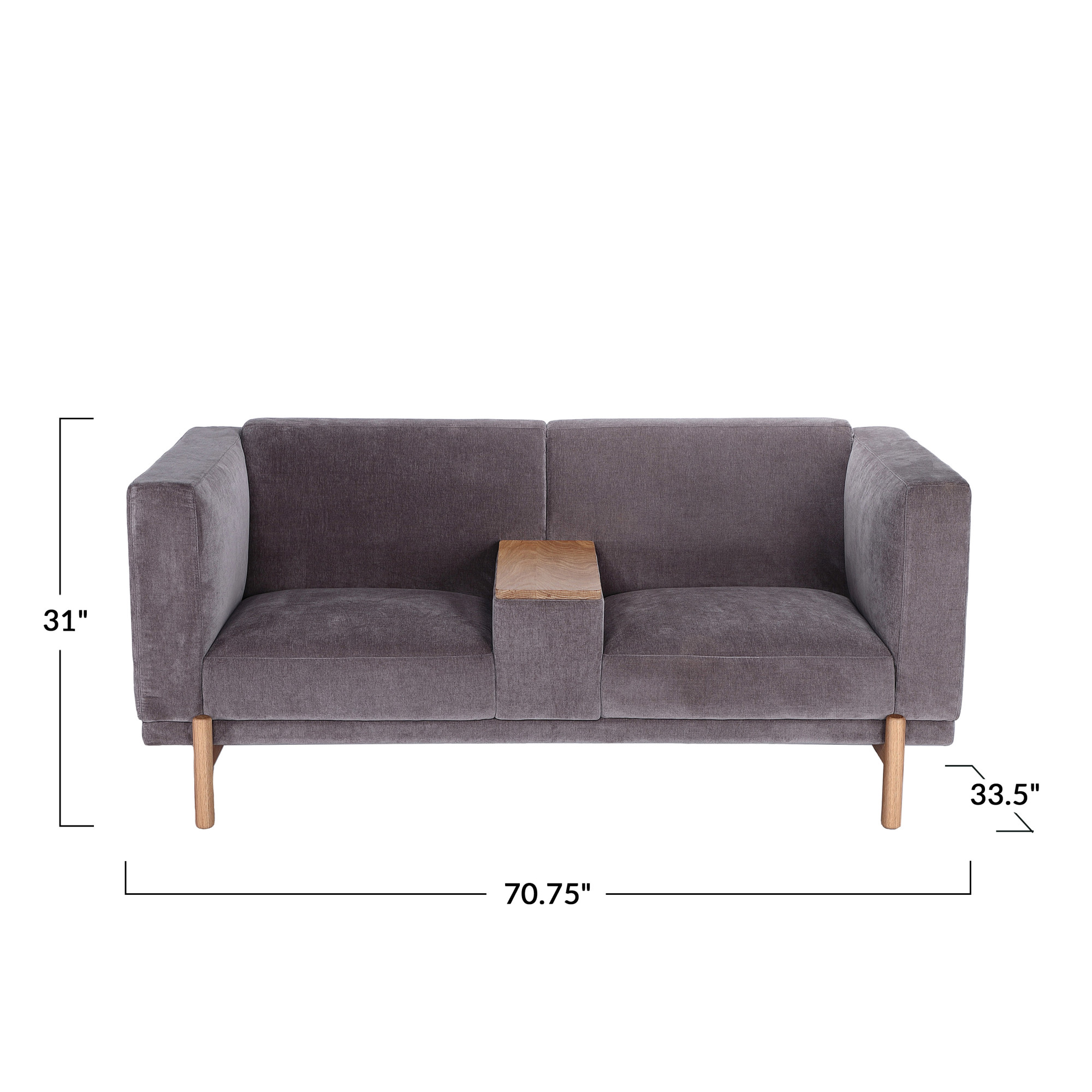 Catalog Name: 70-3/4"W x 33-1/2"D x 31"H Velvet Upholstered & Oak Wood Sofa w/ Middle Console Storage, Grey & Natural, Truck Ship