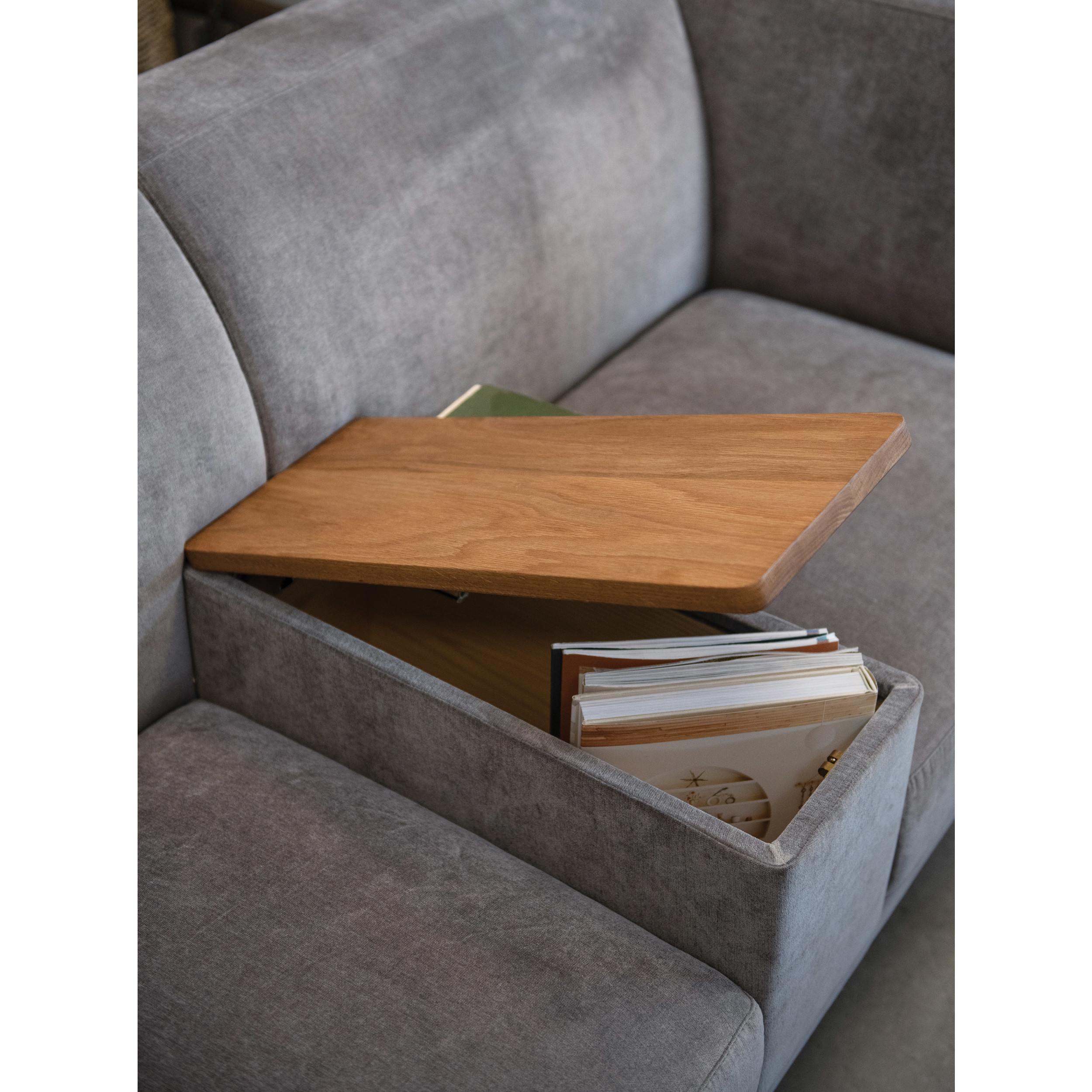This sofa serves as a focal piece of the room. With this unique and functional design, it is sure to be a conversation starter. Features middle storage and square arms on either side. Sits on four solid wood legs.
