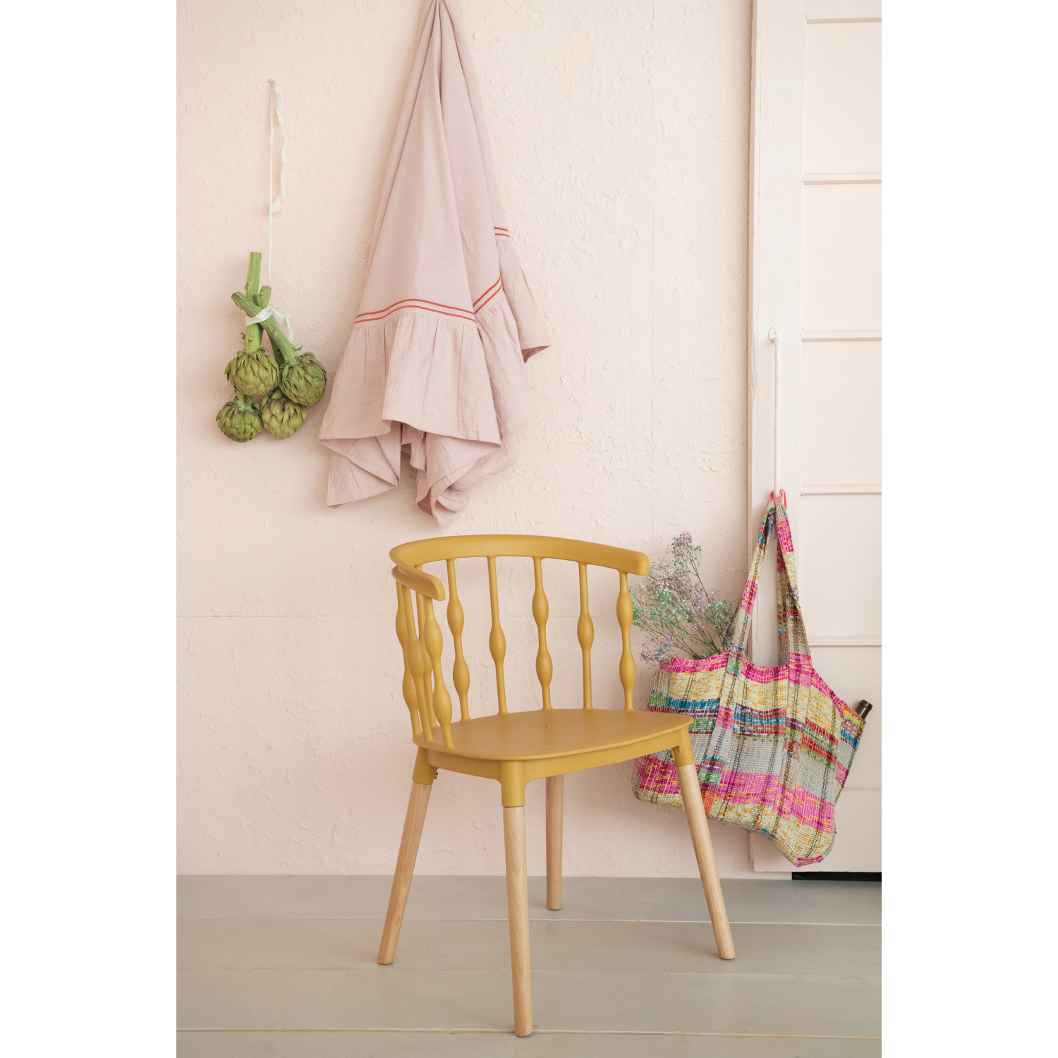 Catalog Name: 21-1/4"W x 23"D x 31-1/2"H Plastic Shaker Dining Chair w/ Wood Legs & Spindle Slatted Back, Mustard Color & Natural, KD