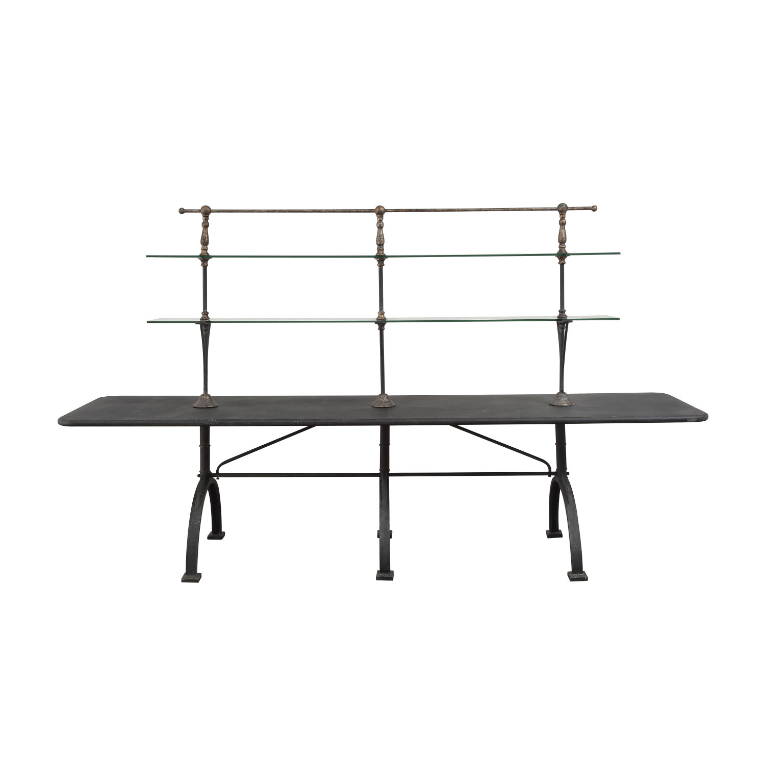 Catalog Name: 118"L x 31-1/2"W x 68-3/4"H Metal Vintage Reproduction Bakery Table w/ 2 Glass Shelves, Distressed Black, KD, Truck Ship