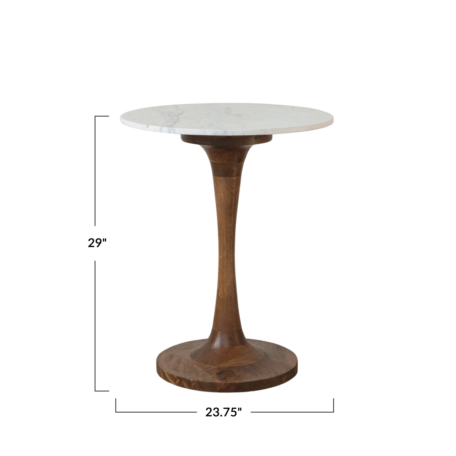 Catalog Name: 23-3/4" Round x 29"H Mango Wood & Marble Tulip Table, Natural & White, KD, Truck Ship