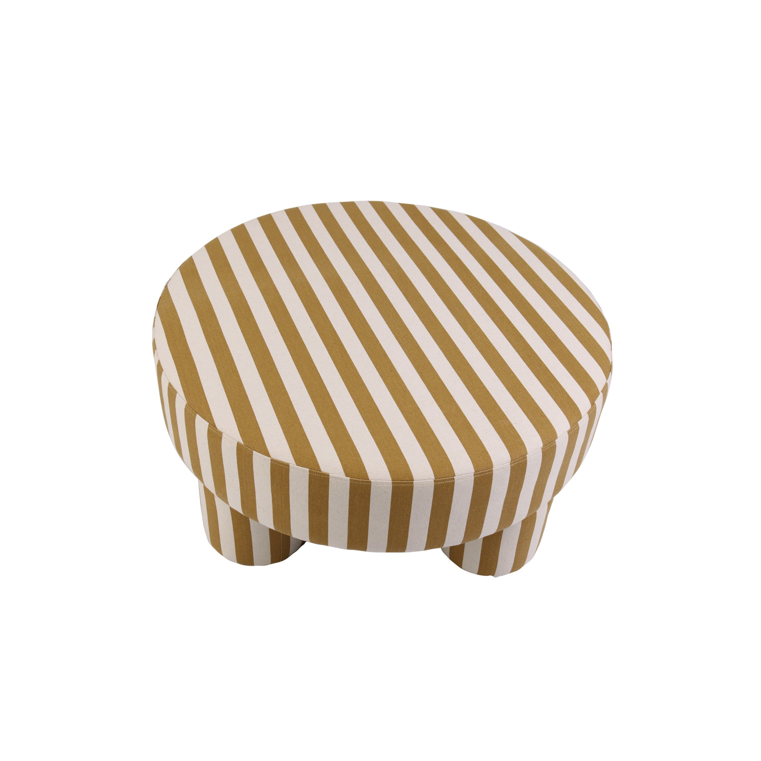 Catalog Name: 32-1/4" Round x 14-1/2"H Fabric Upholstered Striped Table/Ottoman, Cream & Mustard Color