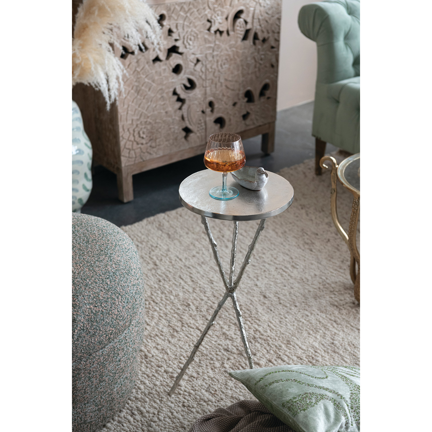 Catalog Name: 13" Round x 25"H Aluminum Tripod Table w/ Twig Shaped Legs, Nickel Finish, KD