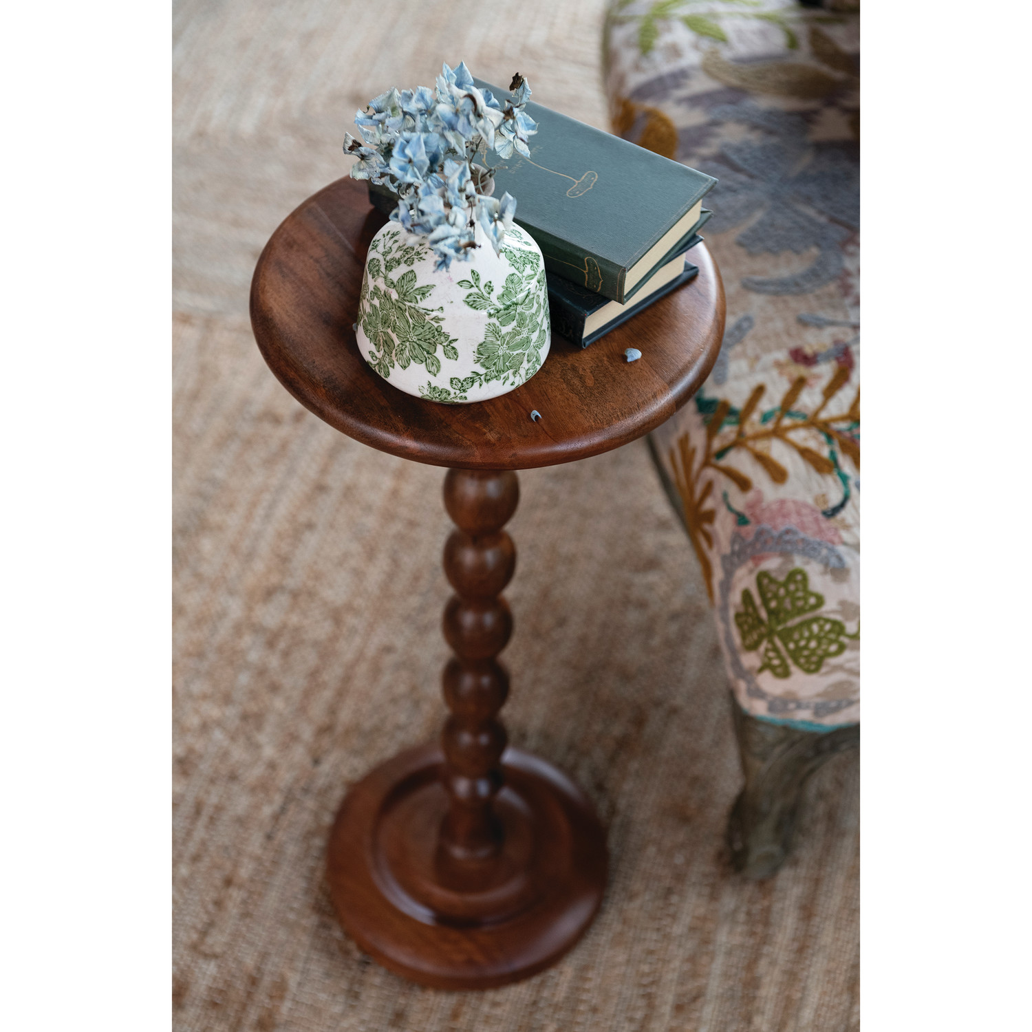 Mango Wood Turned Martini Table, Walnut Finish