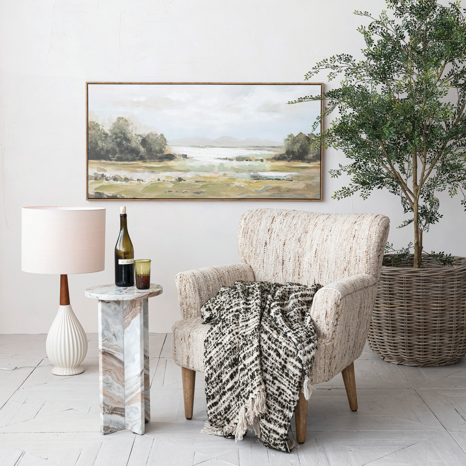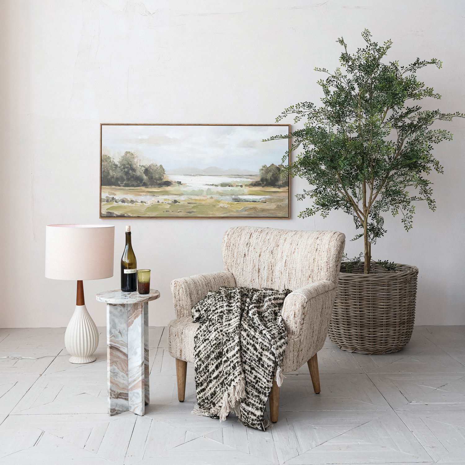 Catalog Name: 12" Round x 22"H Marble Table, Brown Torrento, Truck Ship