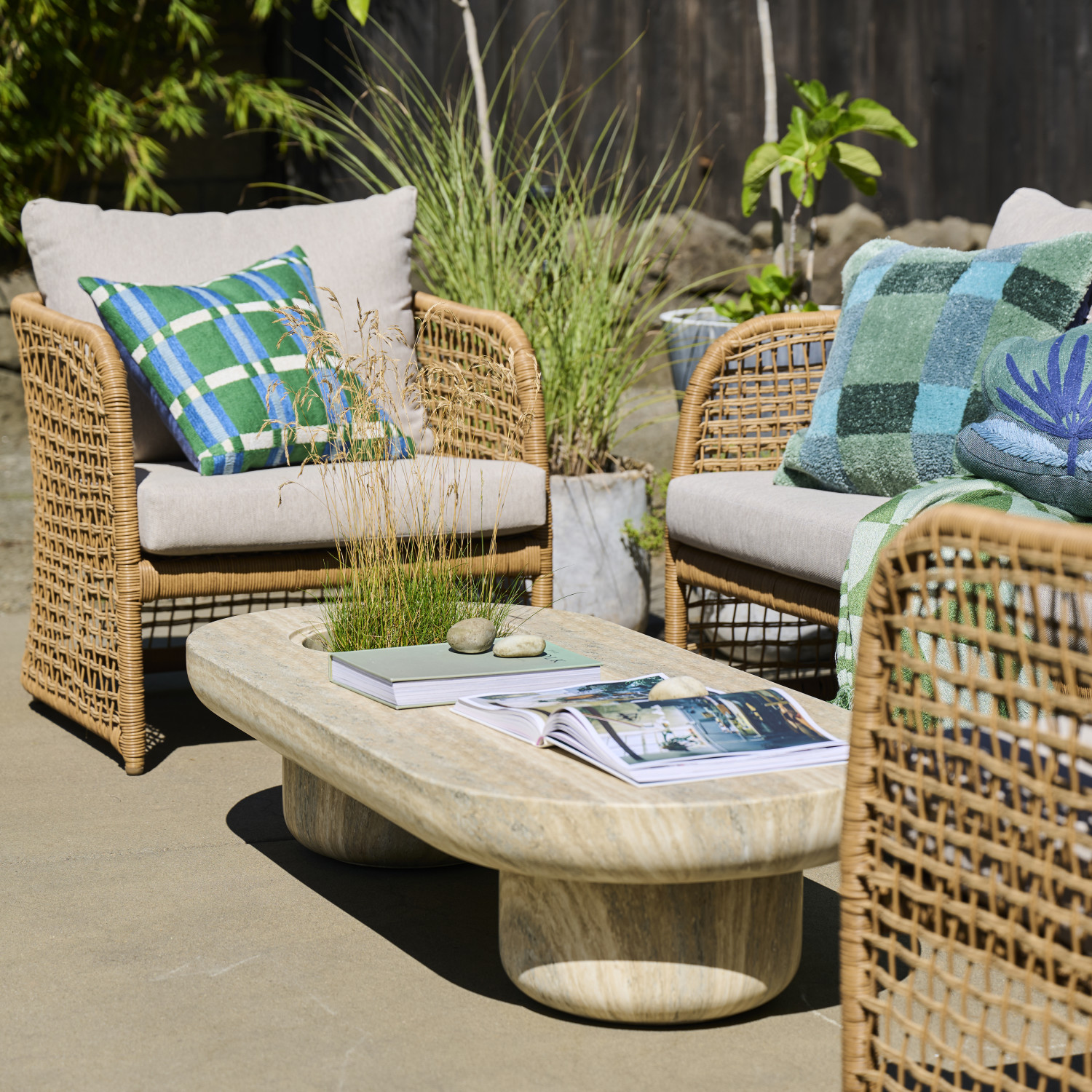Lightweight Eco Stone Indoor/Outdoor Table with Planter & Drainage Hole (Holds 10" Pot)