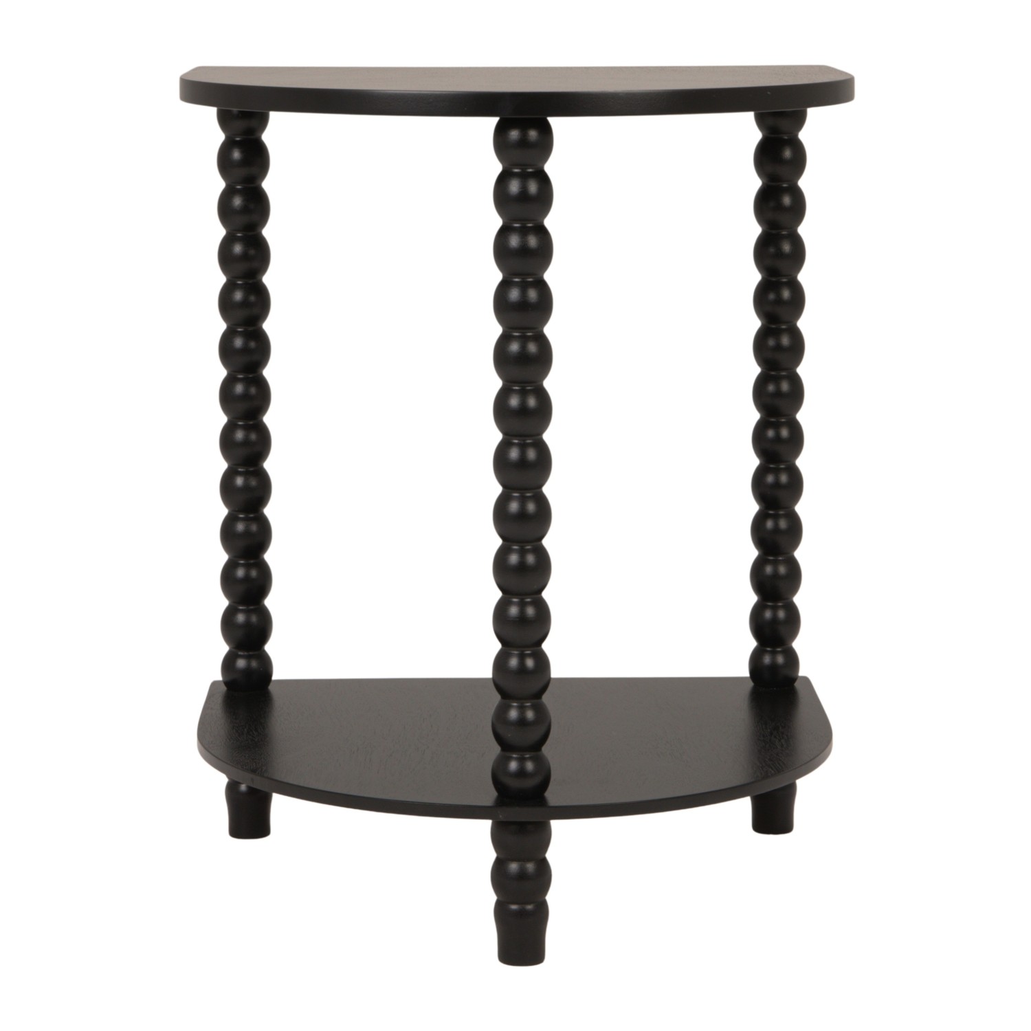 Catalog Name: 17-1/4"W x 14-1/2"D x 22"H MDF & Wood Demilune Table w/ Turned Legs & Shelf, Black, KD