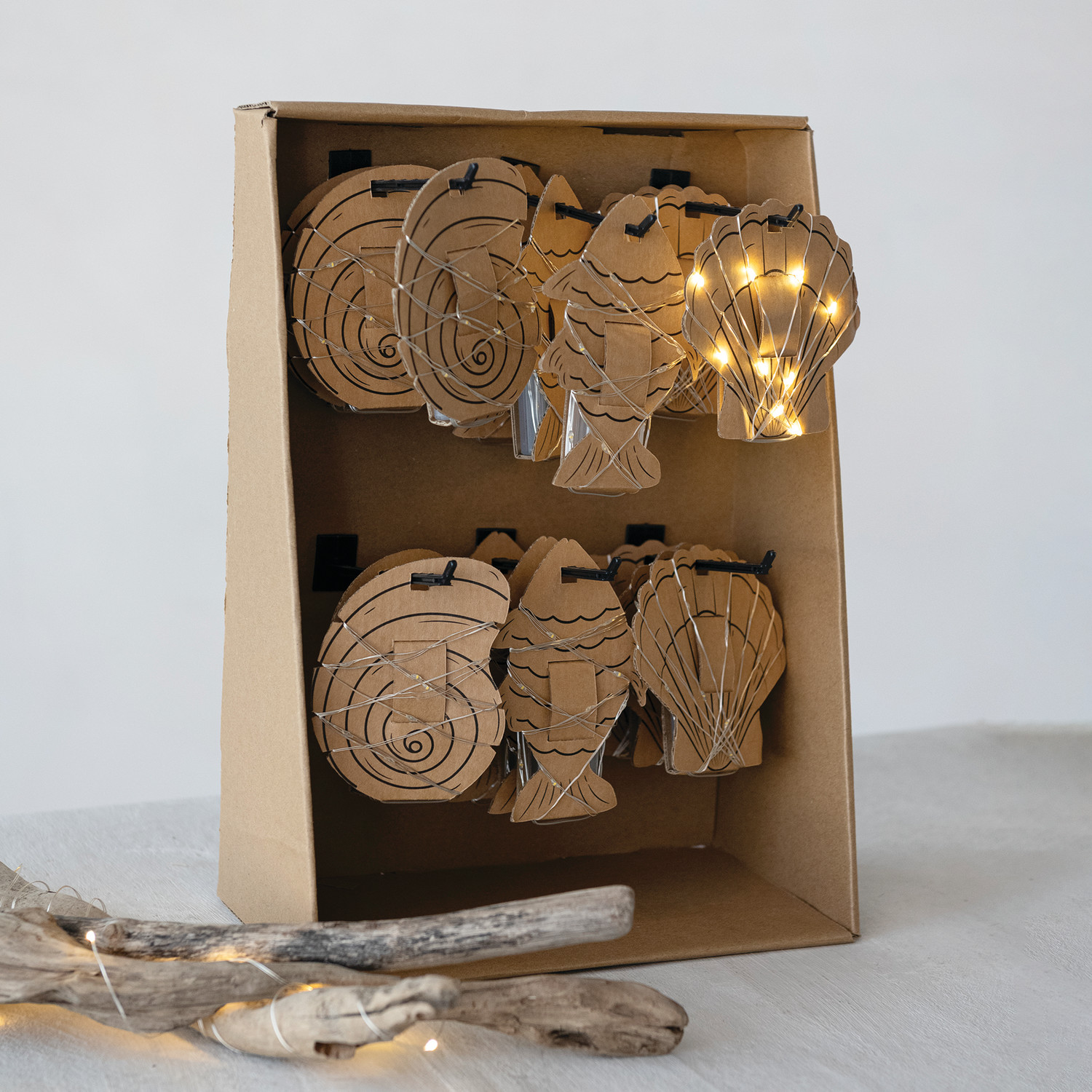 Catalog Name: 74"L LED String Lights on 3 Styles of Paper Fish/Shell Display Cards w/ PDQ (Contains 36 Pieces) (Requires 2-AA Batteries)