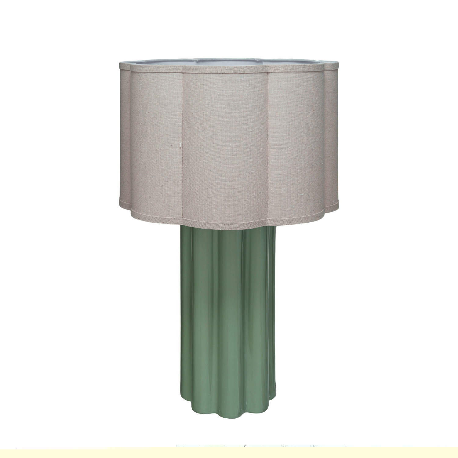 Catalog Name: 16-1/2" Round x 27"H Stoneware Fluted Table Lamp w/ Linen Scalloped Shade & Swivel Neck, Mint Color, Truck Ship