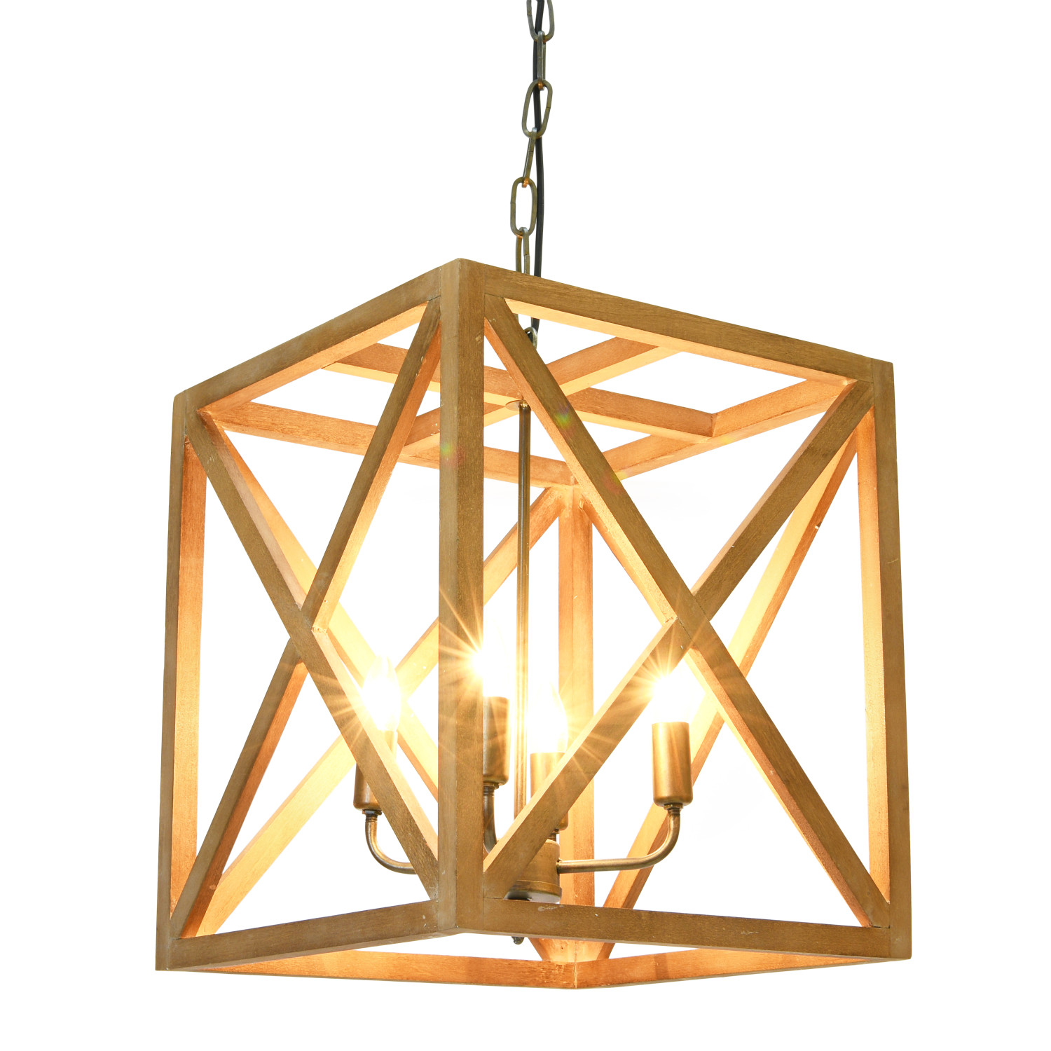 Catalog Name: 15-3/4" Sq x 17-3/4"H Metal & Wood Chandelier (25 Watt)