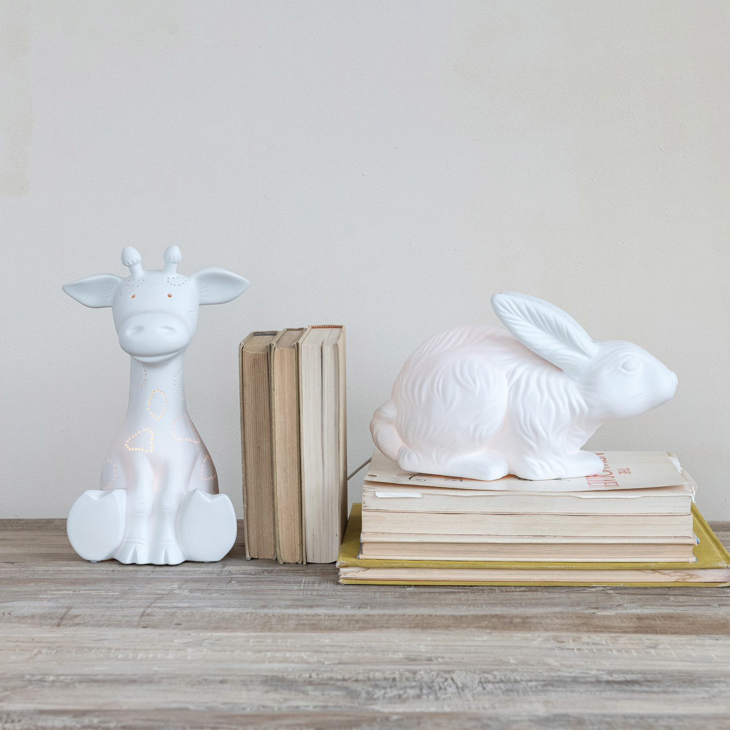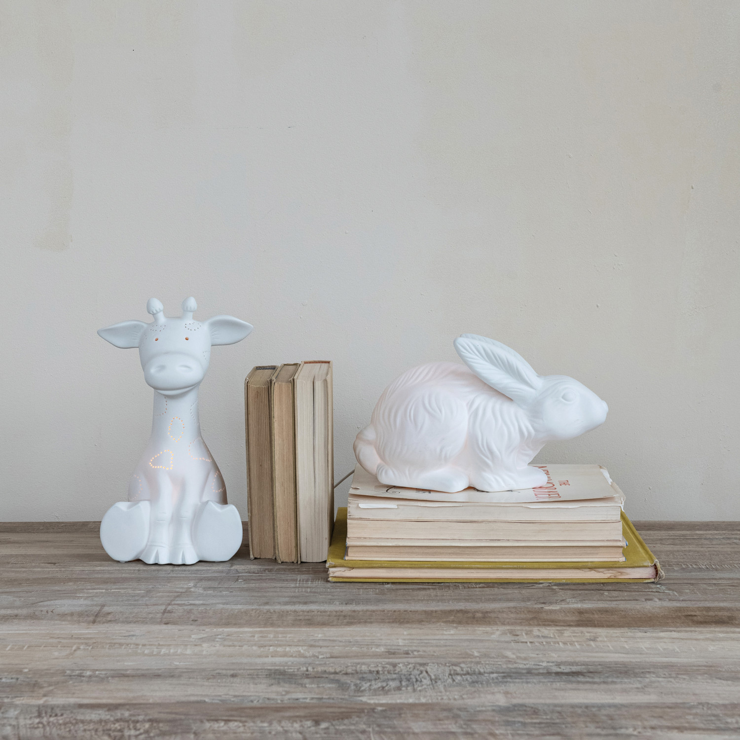 Stoneware Rabbit Shaped Lamp with Inline Switch, Bisque White